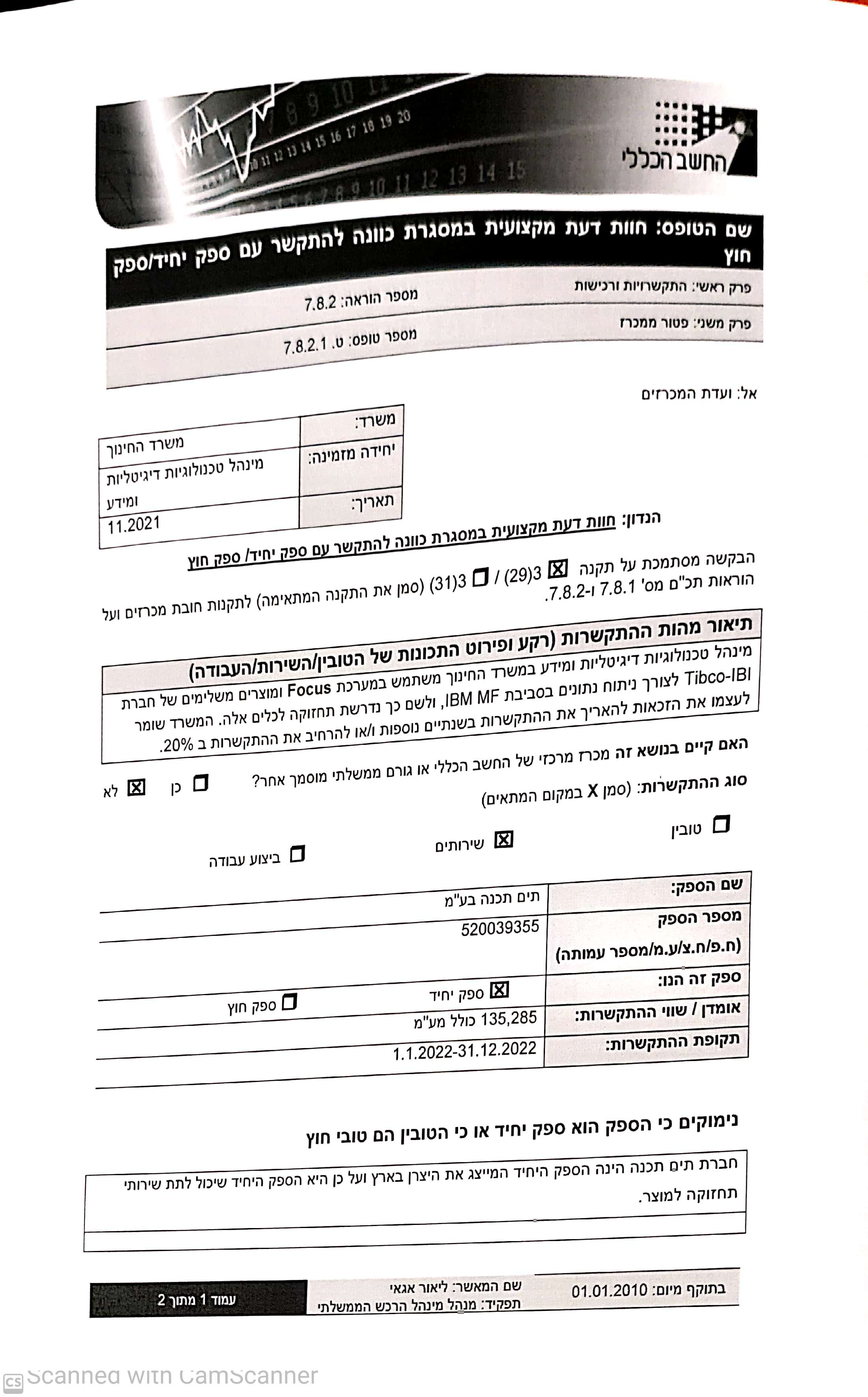 התקשרות עם חברת תים תוכנה תחזוקת FOCUS וWEBFOCUS