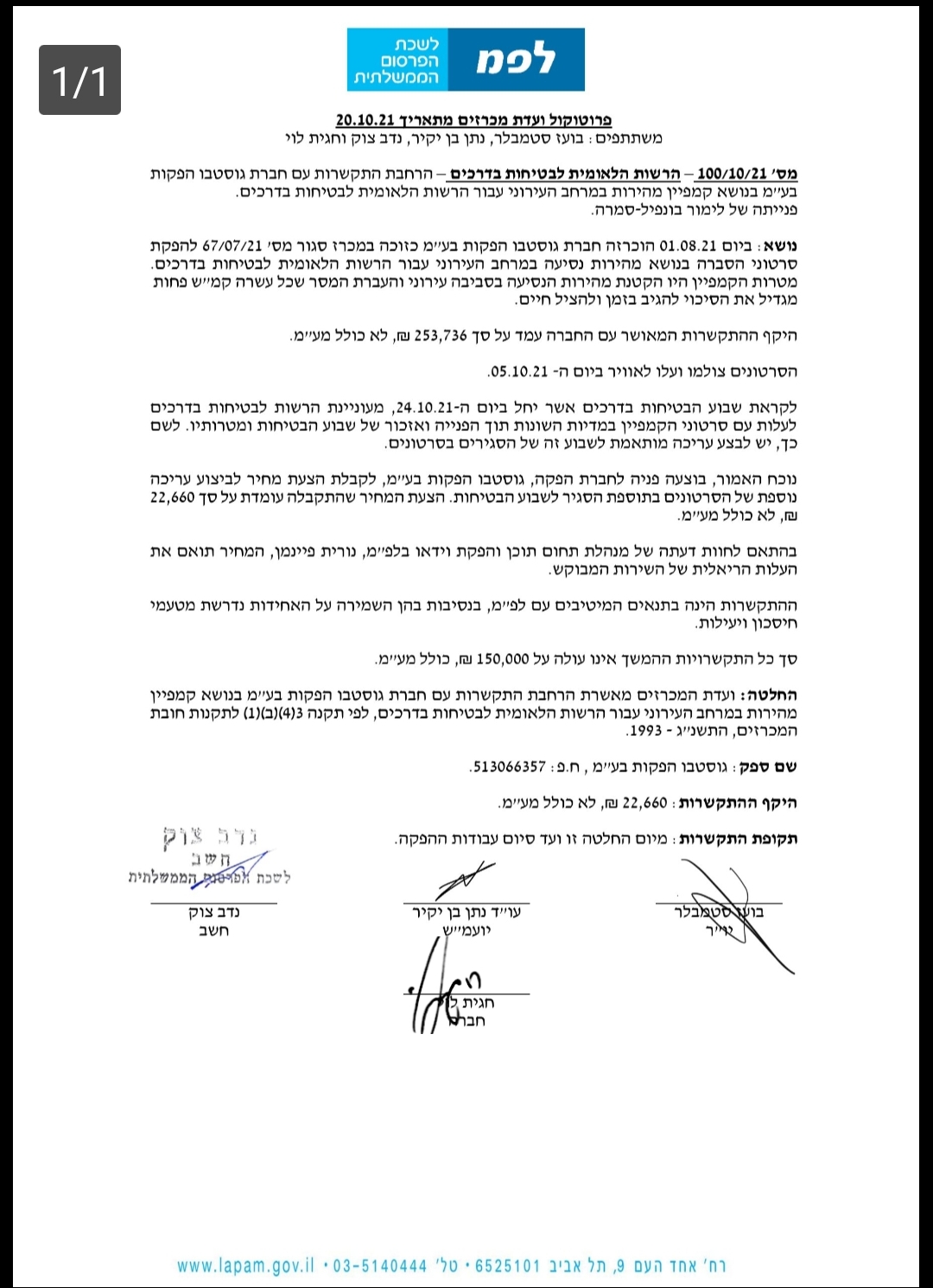 הרחבת התקשרות עם חב' גוסטבו הפקות בע"מ בנוגע לקמפיין מהירות במרחב העירוני עבור הרלב"ד