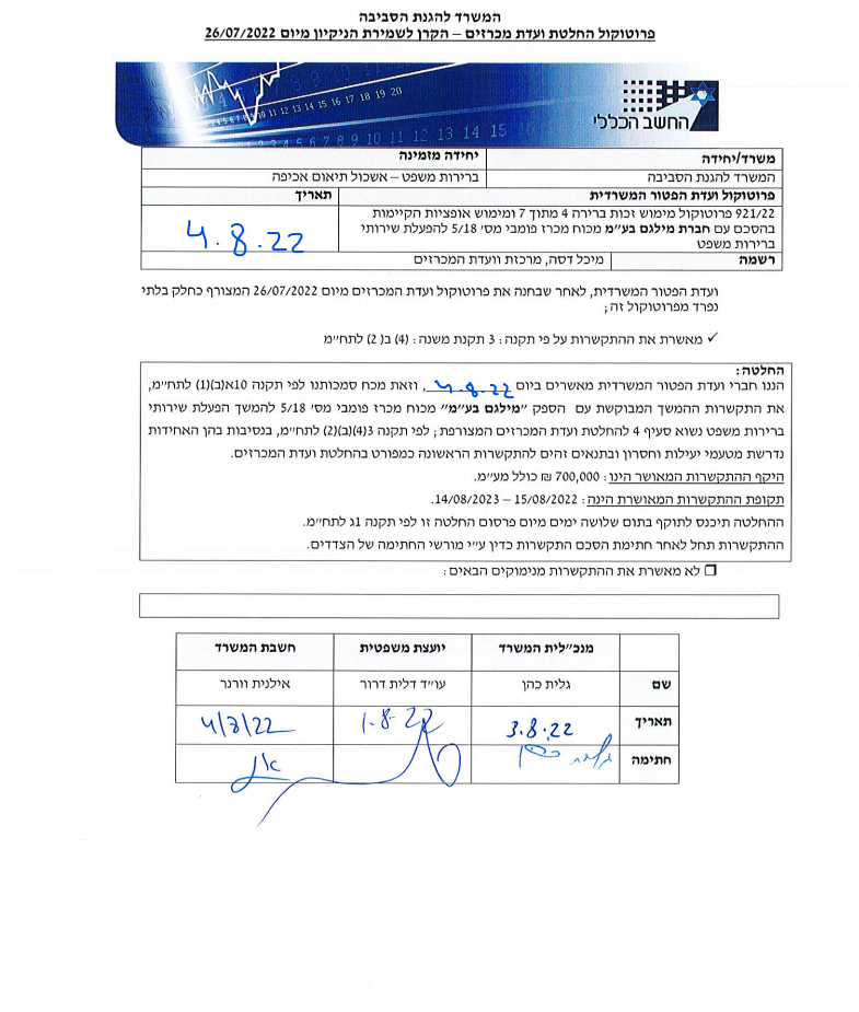 התקשרות המשך עם מילגם מכוח מכרז פומבי 5/18 לשירותי ברירות משפט