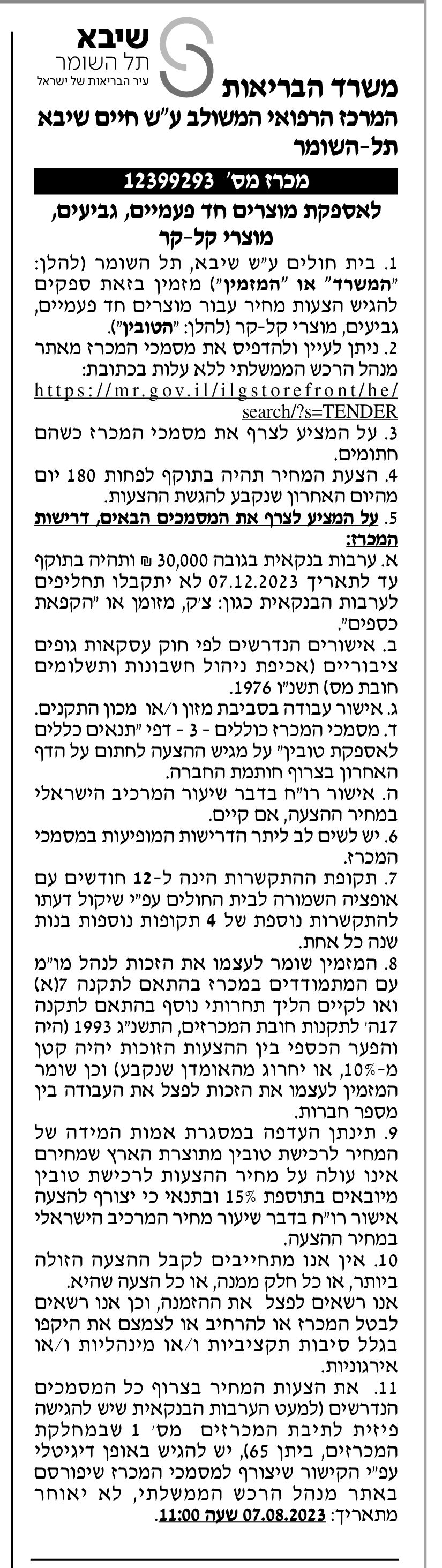 07/08/2023 ,11:00מועד האחרון להגשה חלף
