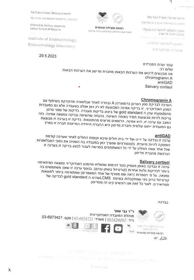 ערכות לביצוע בדיקות רמת הורמונים- .ANTI-GAD. SALIVA CORTISOL. CHROMOGRANIN A.