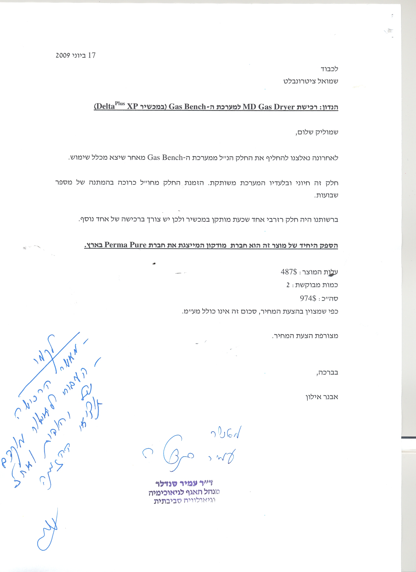 רכישת MD GAS DRYER למערכת Gas Bench של מכשיר Delta+ XP