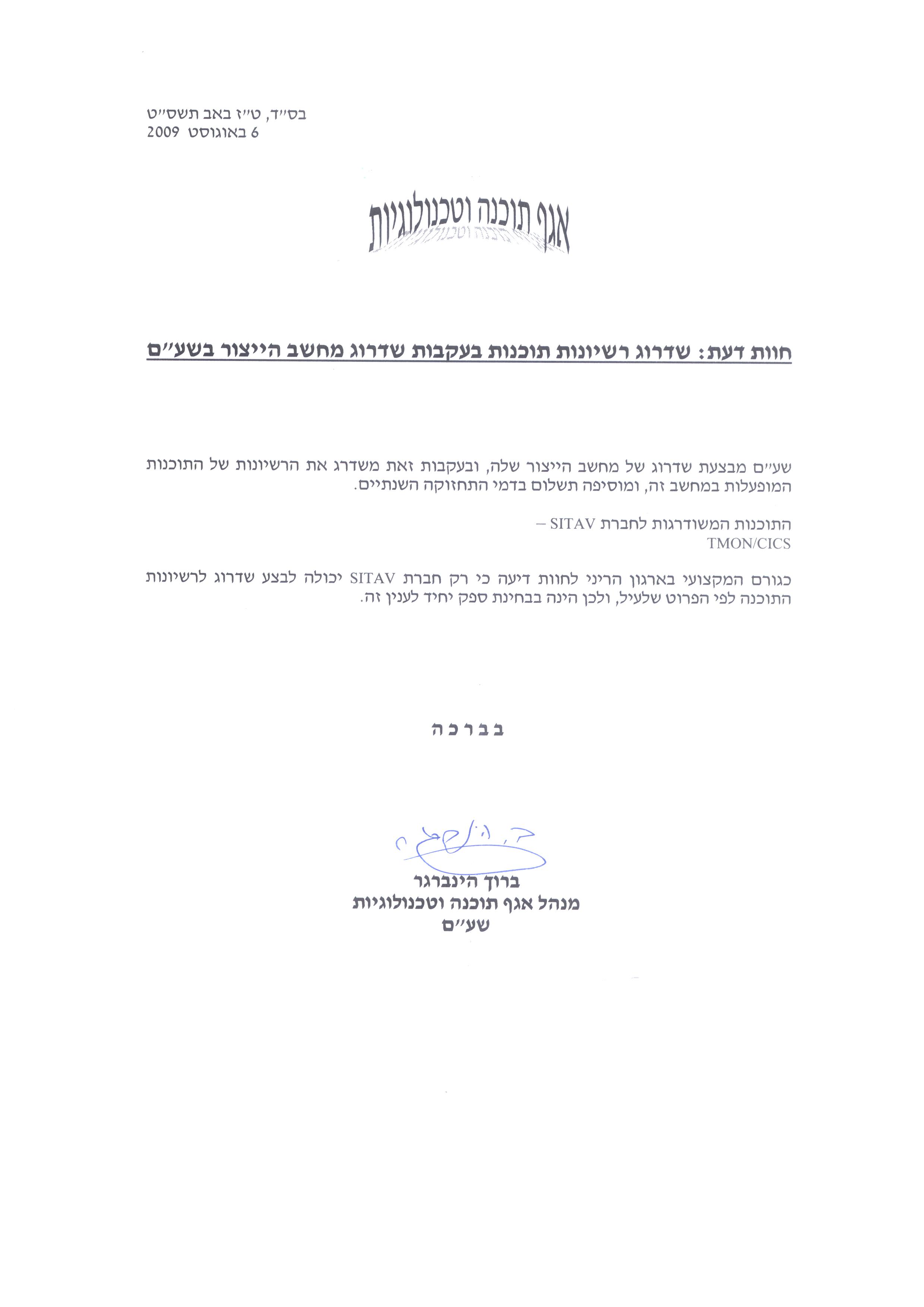 שעם מבצעת שדרוג של מחשב הייצור שלה, ובעקבות זאת משדרג את הרשיונות של התוכנות המופעלות במחשב זה, ומוסיפה תשלום