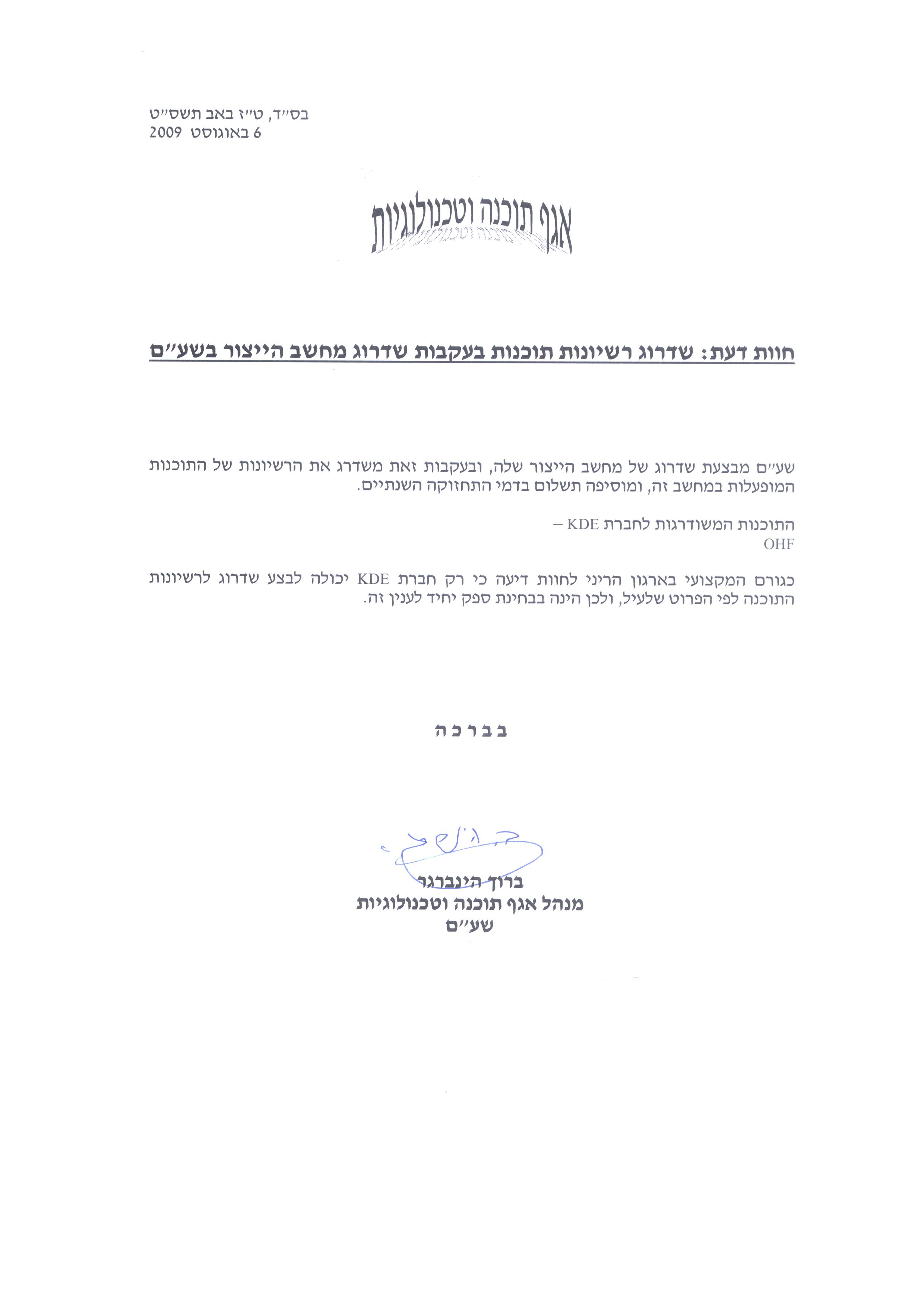 שעם מבצעת שדרוג של מחשב הייצור שלה, ובעקבות זאת משדרג את הרשיונות של התוכנות המופעלות במחשב זה, ומוסיפה תשל