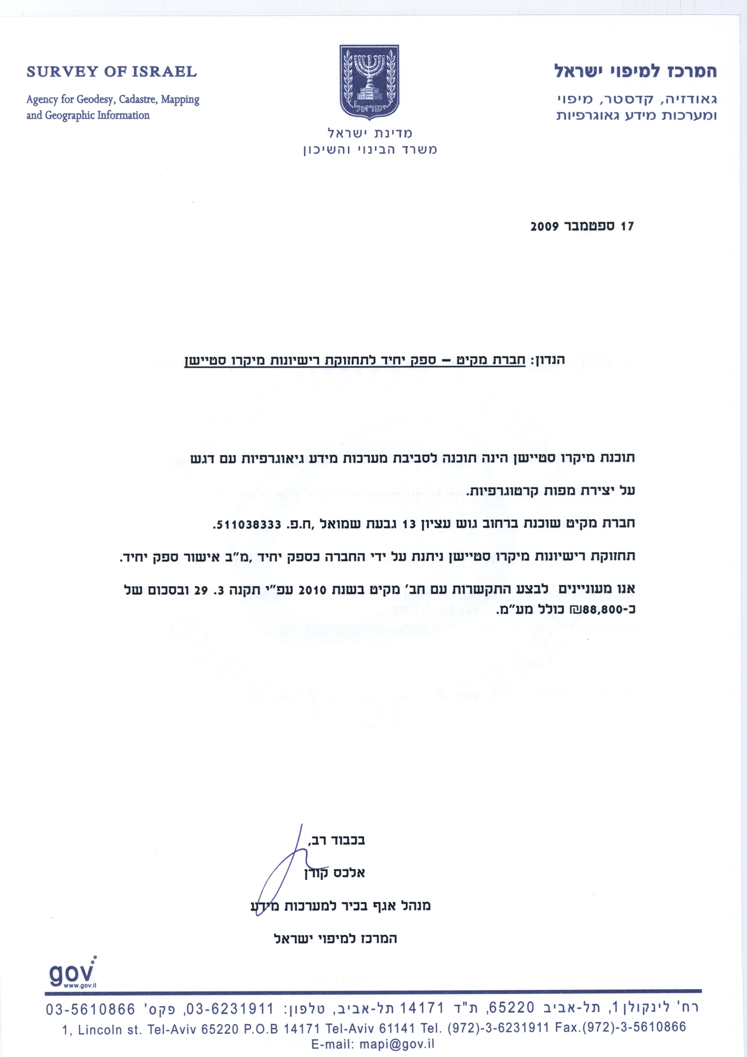 20/10/2009 ,00:00פרטי ההתקשרות