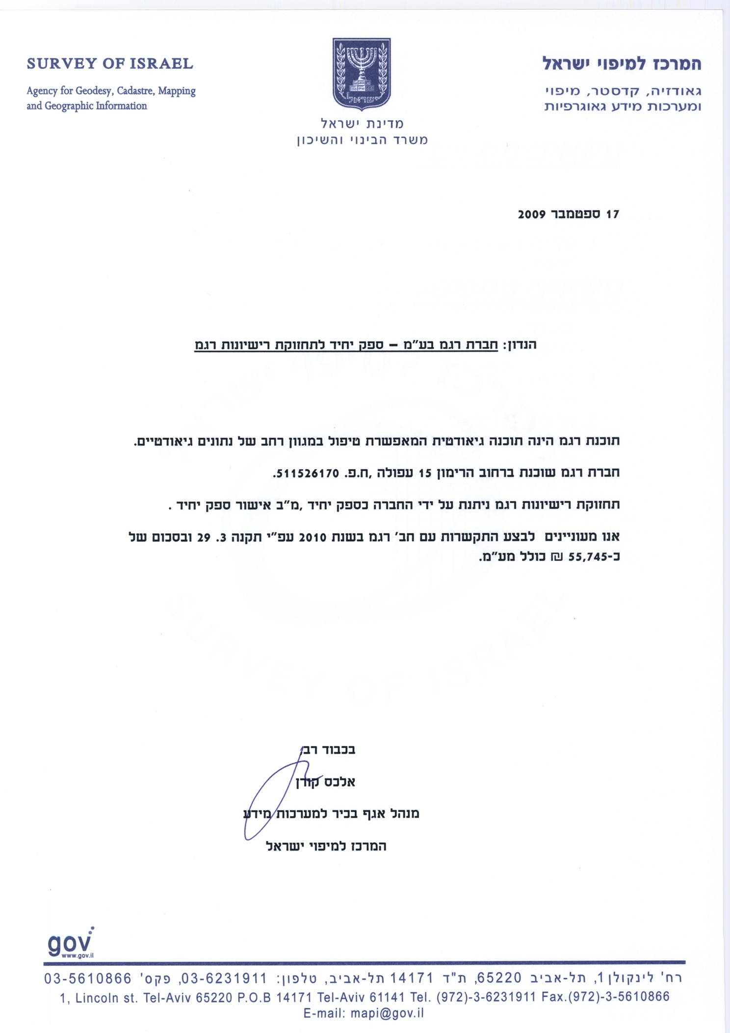 חברת רגם ספק יחיד לתוכנה גיאודטית לטפול בנתונים גיאודטיים