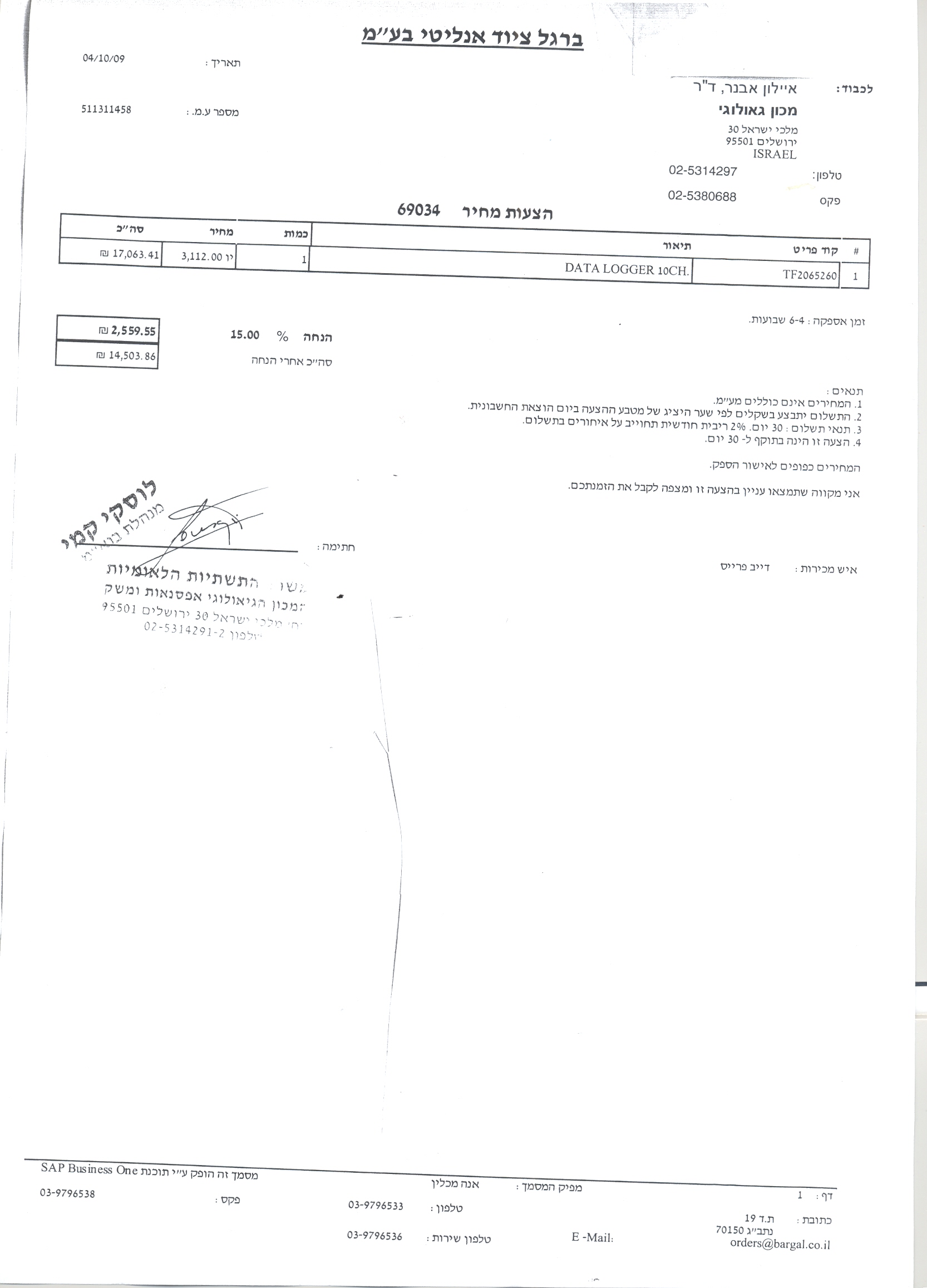 09/11/2009 ,00:00פרטי ההתקשרות