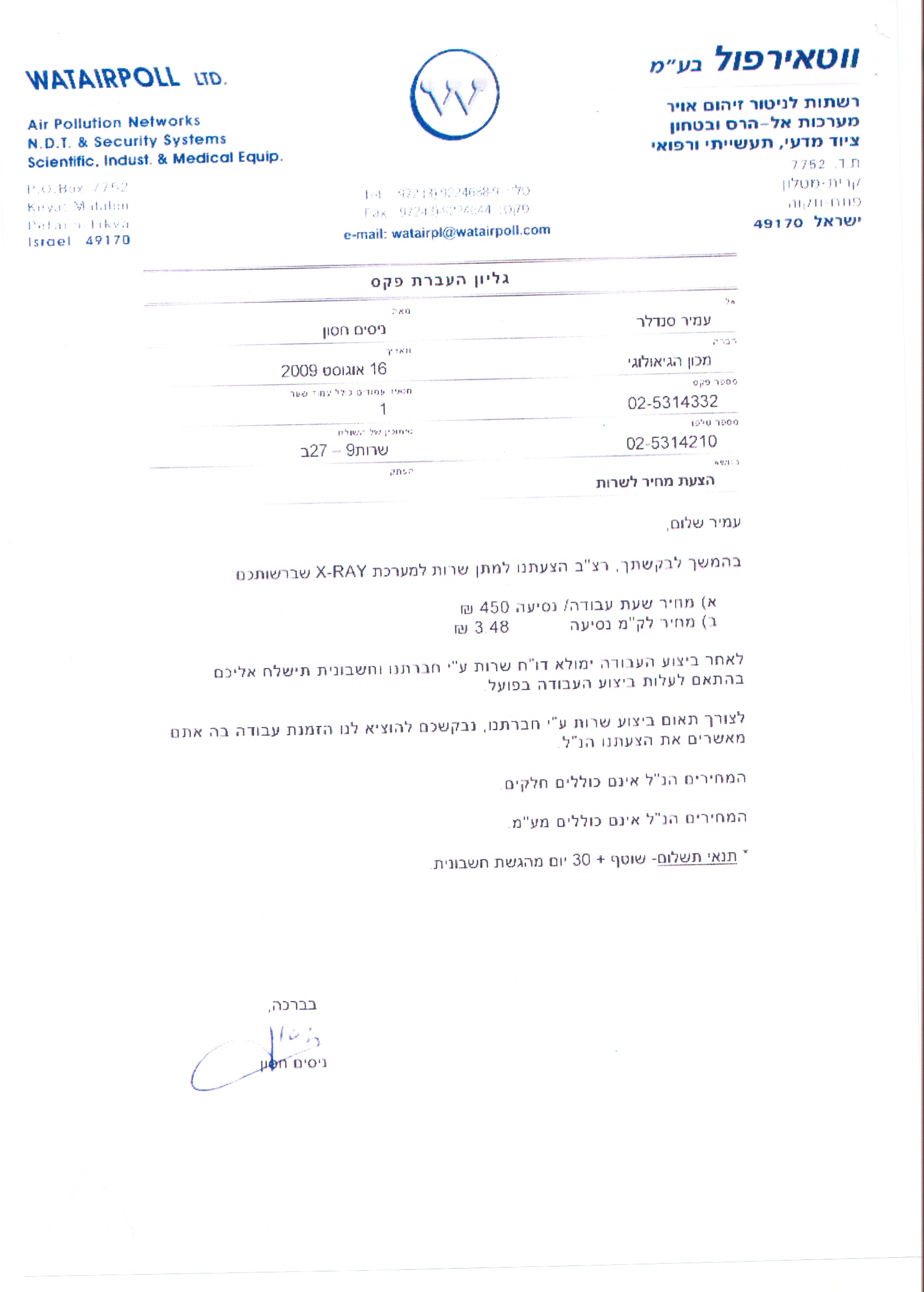 17/11/2009 ,00:00פרטי ההתקשרות