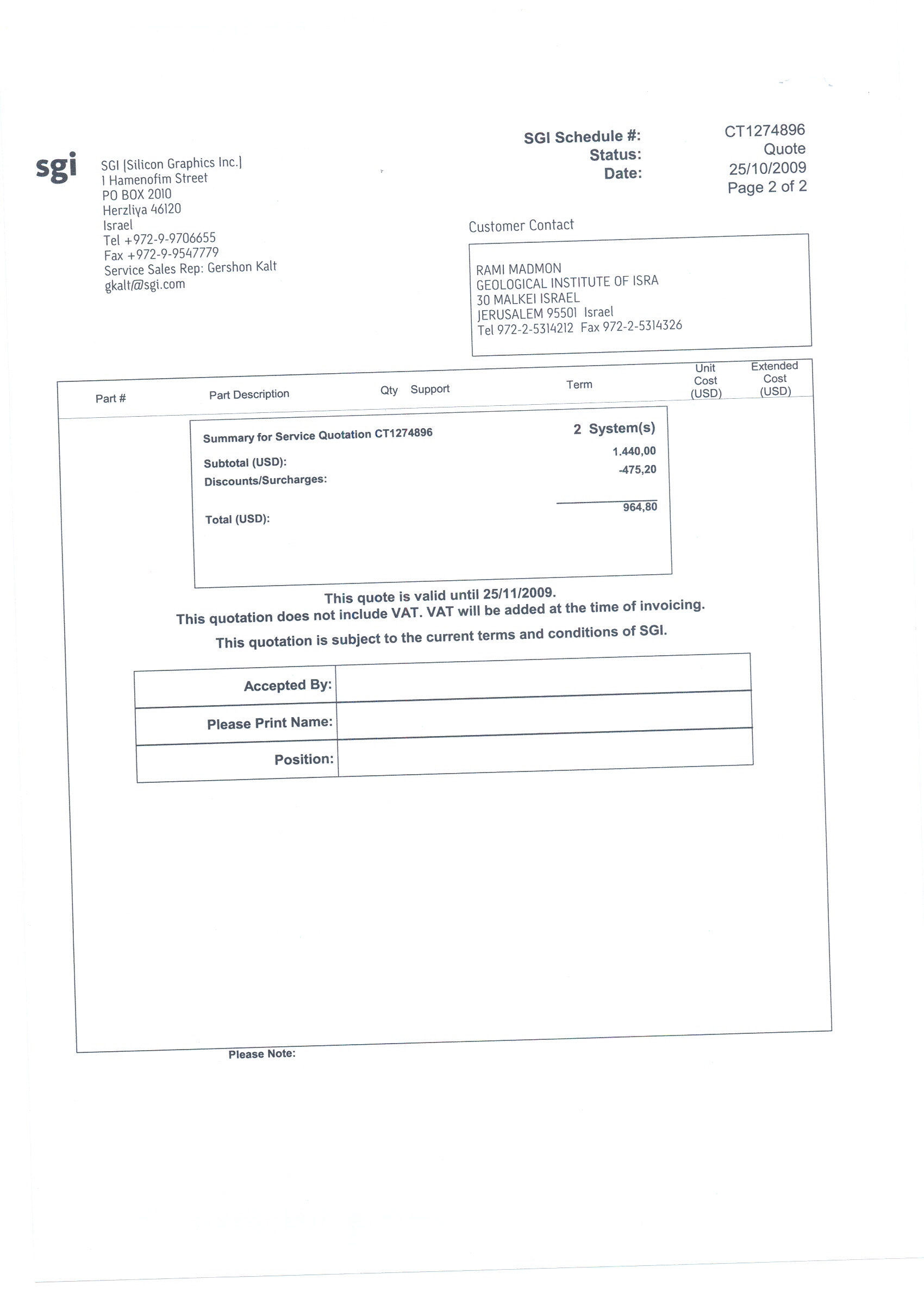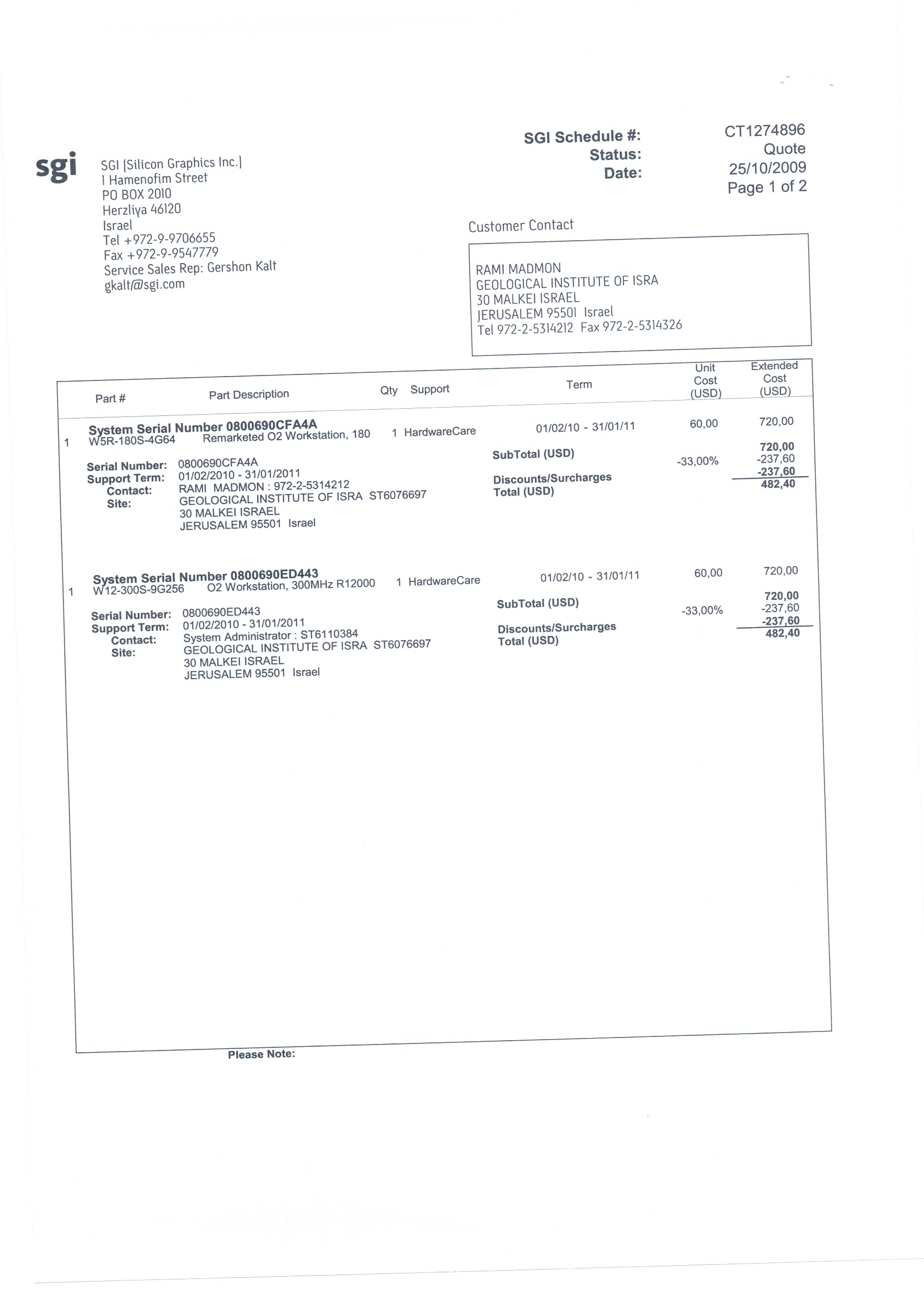 חוזה אחזקה 2 מערכות Silicon Graphics מה-1.2.20010