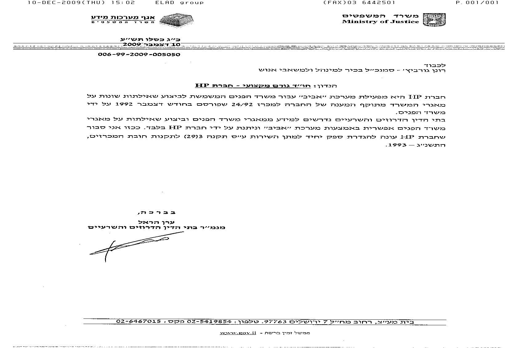 22/12/2009 ,00:00פרטי ההתקשרות