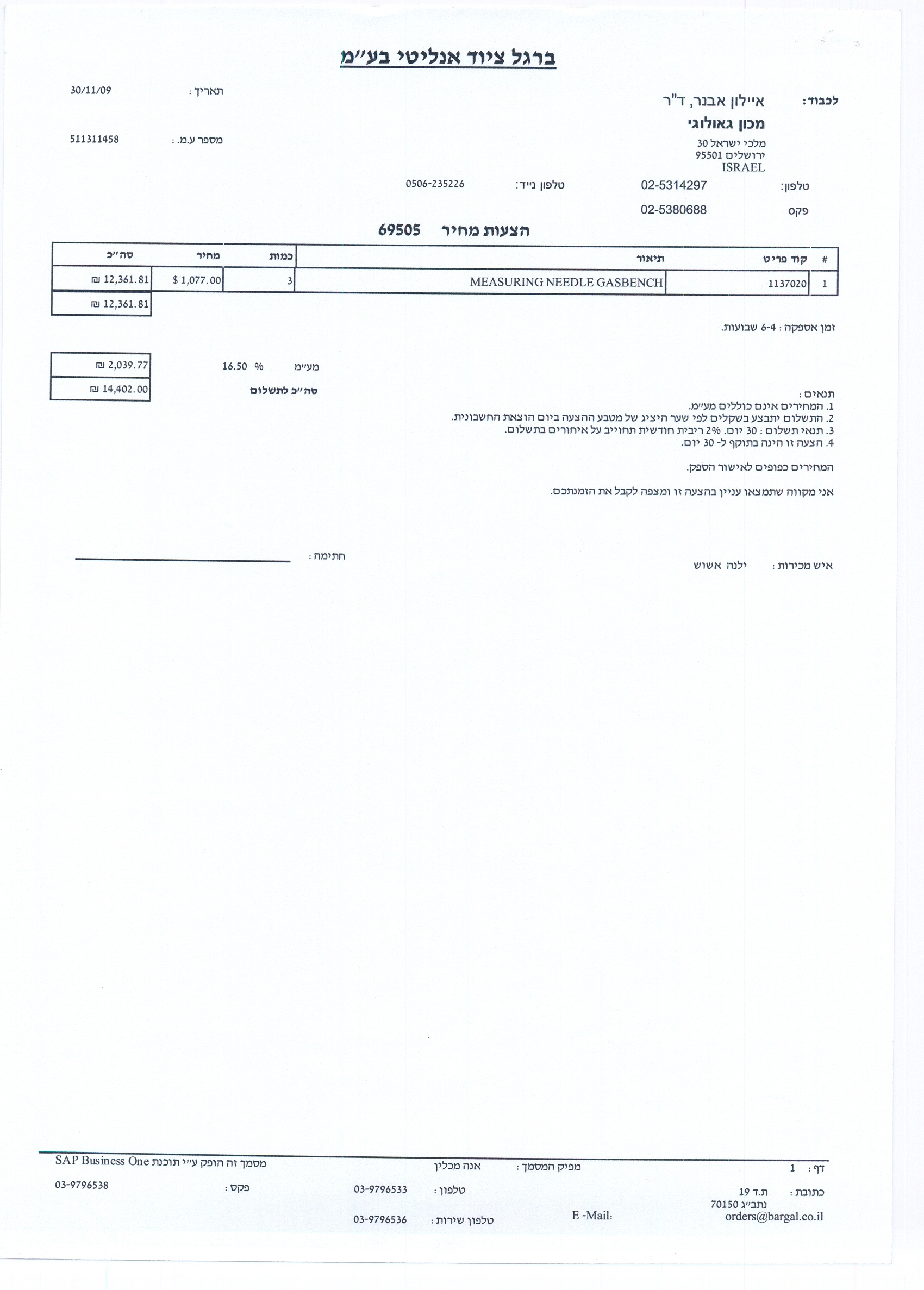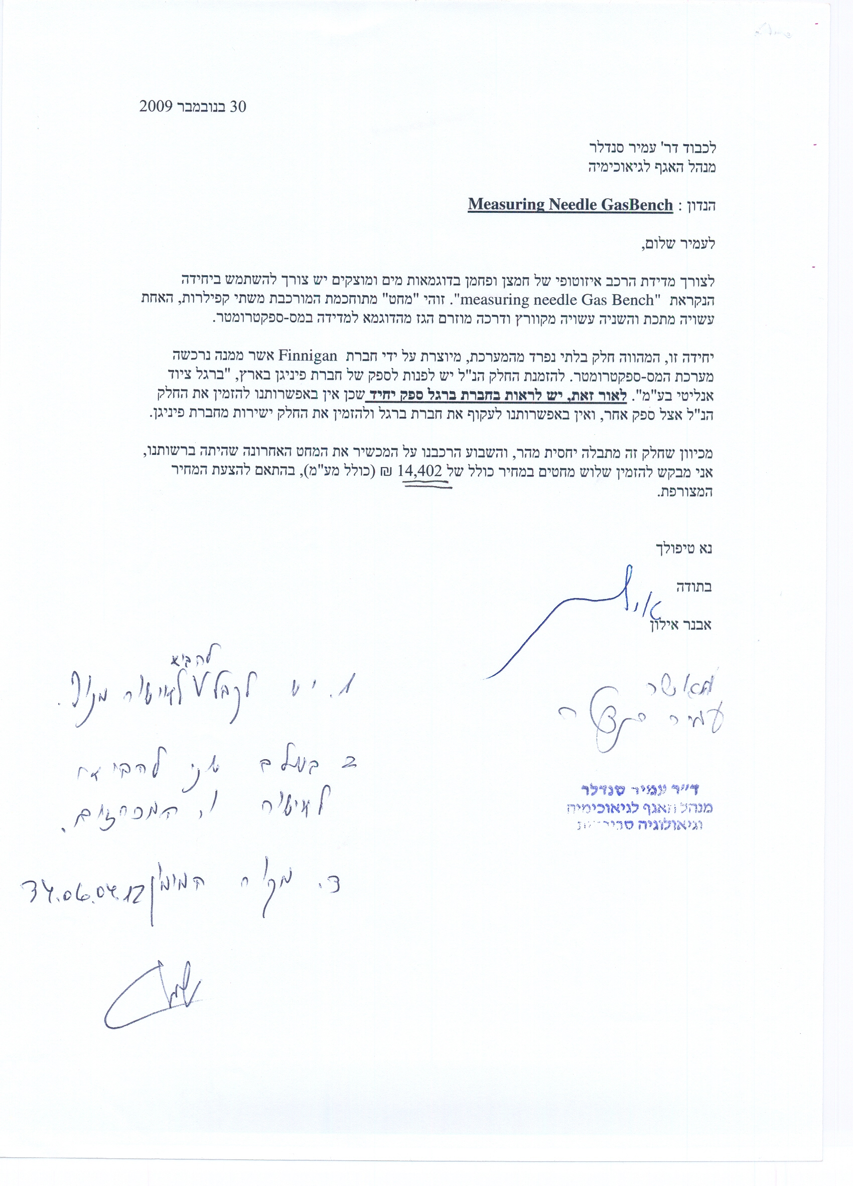 3 מחטים measuring needle GasBench תוצרת Finnigan השייכת למערכת מס-ספקטרומטר