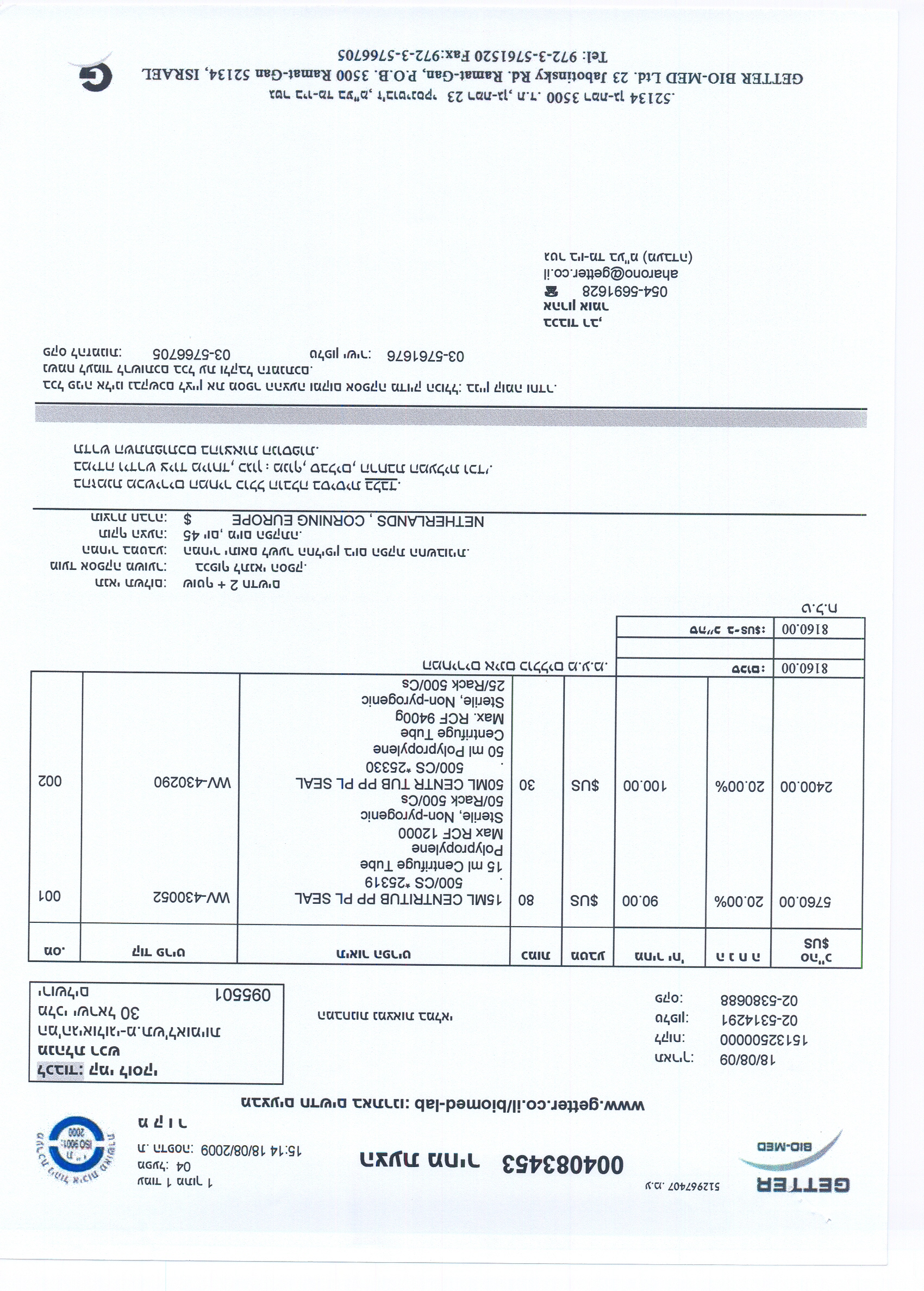 100 אריזות מבחנות תוצרת Corning בנפח 5 מל + 50 אריזות מבחנות תוצרת Corning בנפח 50 מל