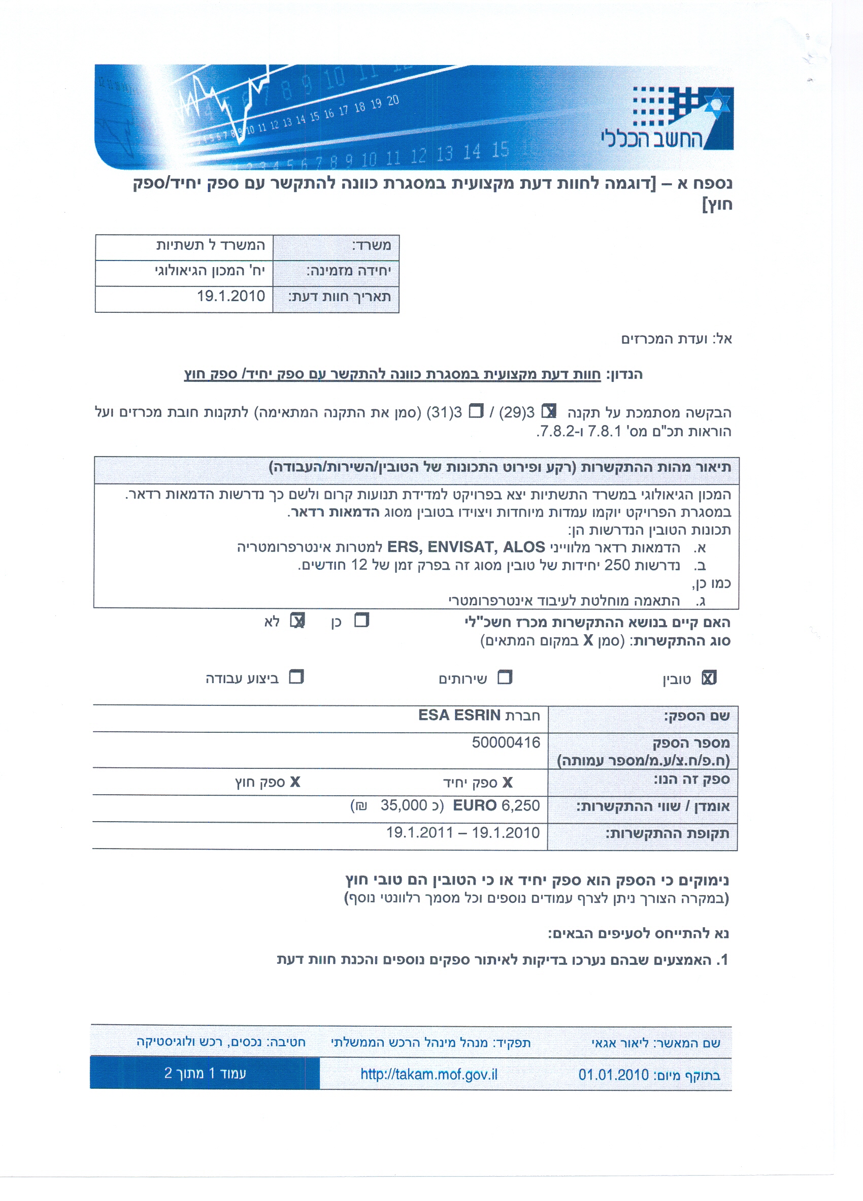 הדמית רדאר מלווייני ERS, ENVISAT, ALOS למטרות אינטרפורמטריה (כ-250 יחידות למשך 12 חודשים) + התאמת מוחלטת לעיבו
