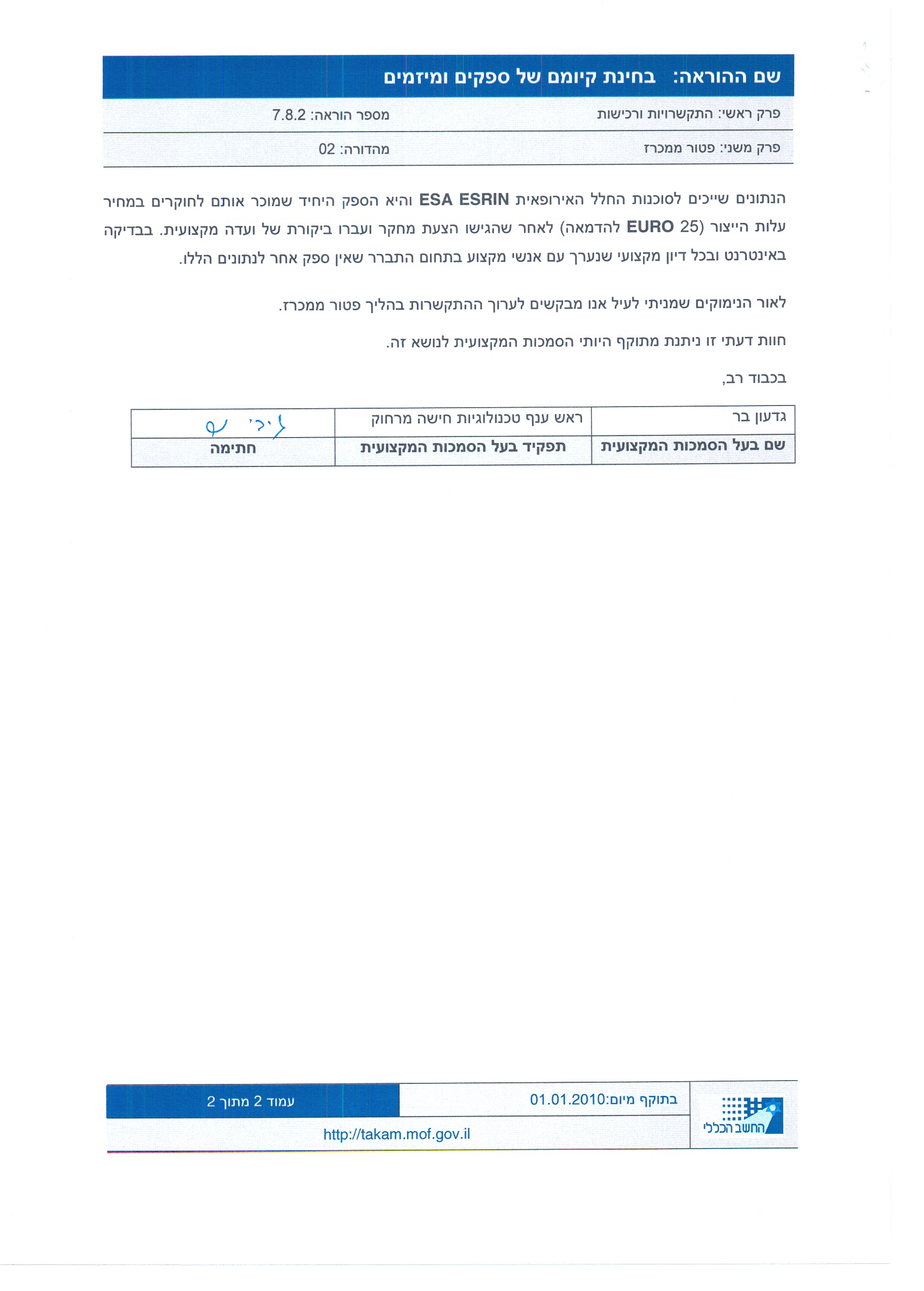 בקשה למימוש אופציה ראשונה עם היועצים עו"ד אוריה שילוני ועו"ד יצחק גורדון לקבלת שירותי נסחות חקיקה.