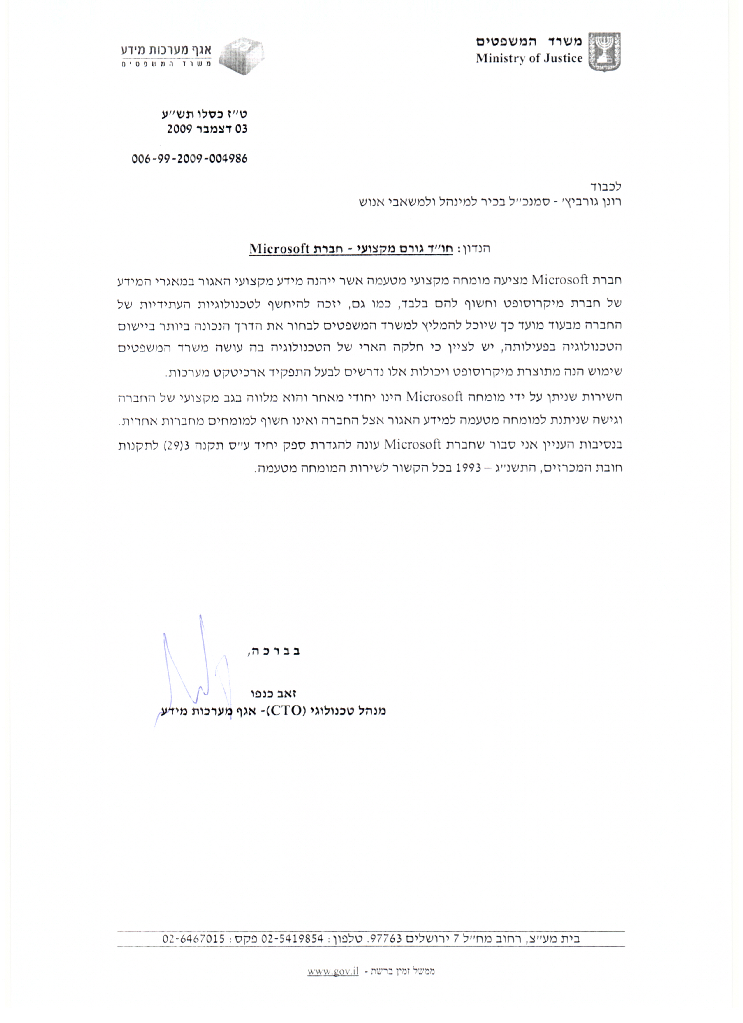 העסקת ארכיטקט תוכנה מחברת מיקרוסופט.