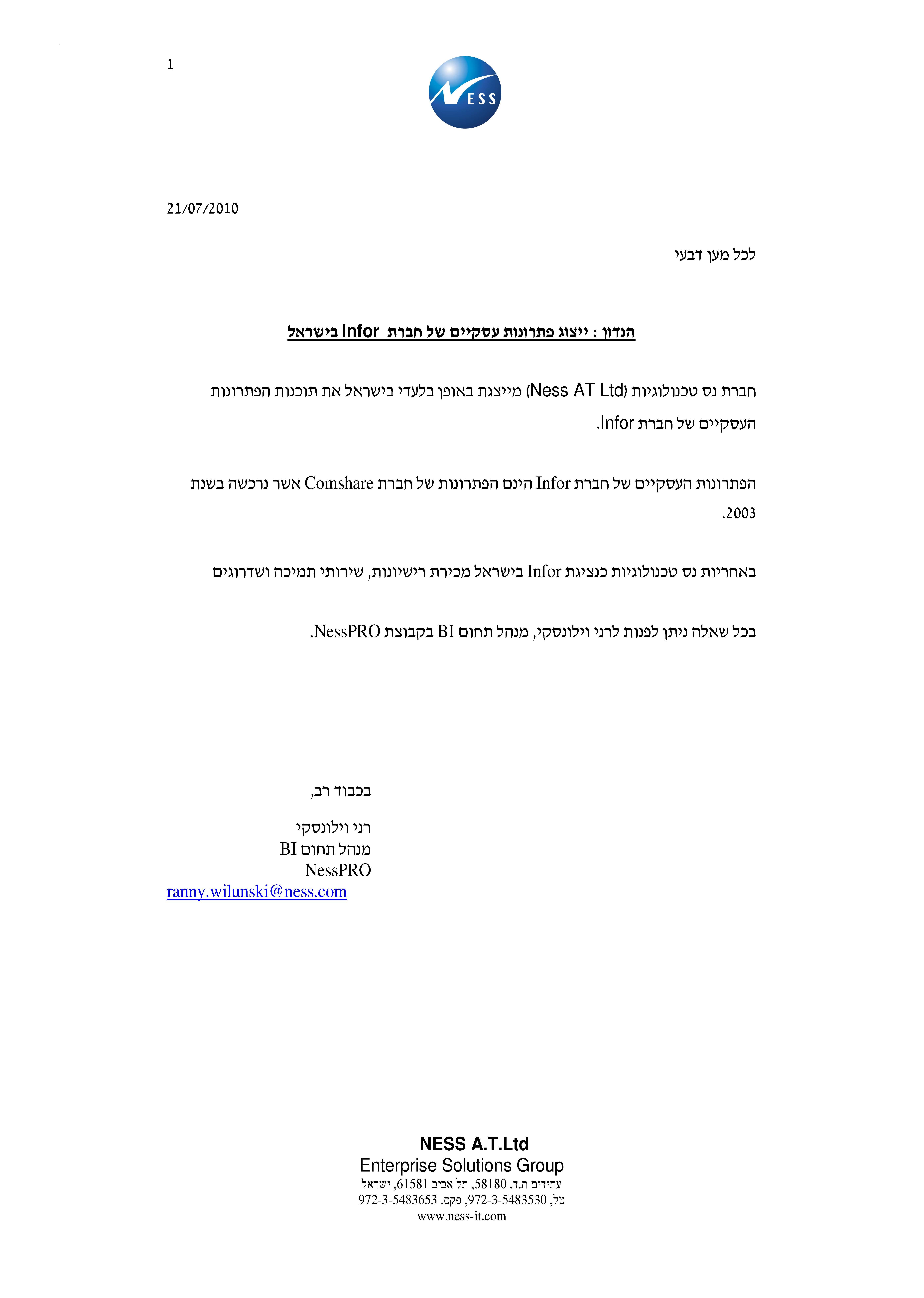 משרד הרווחה והשירותים החברתיים מעוניין להתקשר עם חברת נס איי.טי. בעמ נציגת חברת Comshare בישראל. תוכנת D