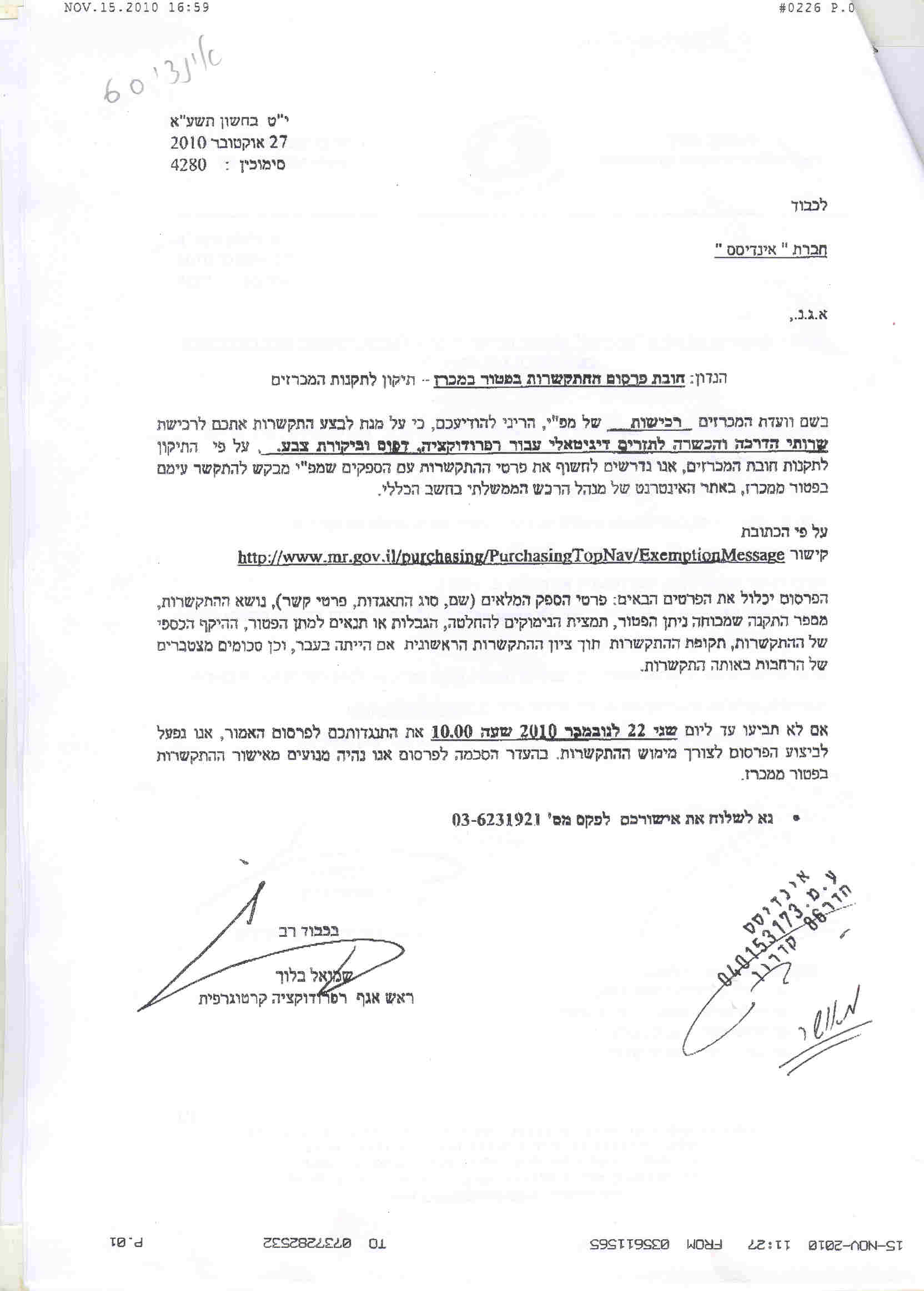 20/12/2010 ,00:00פרטי ההתקשרות