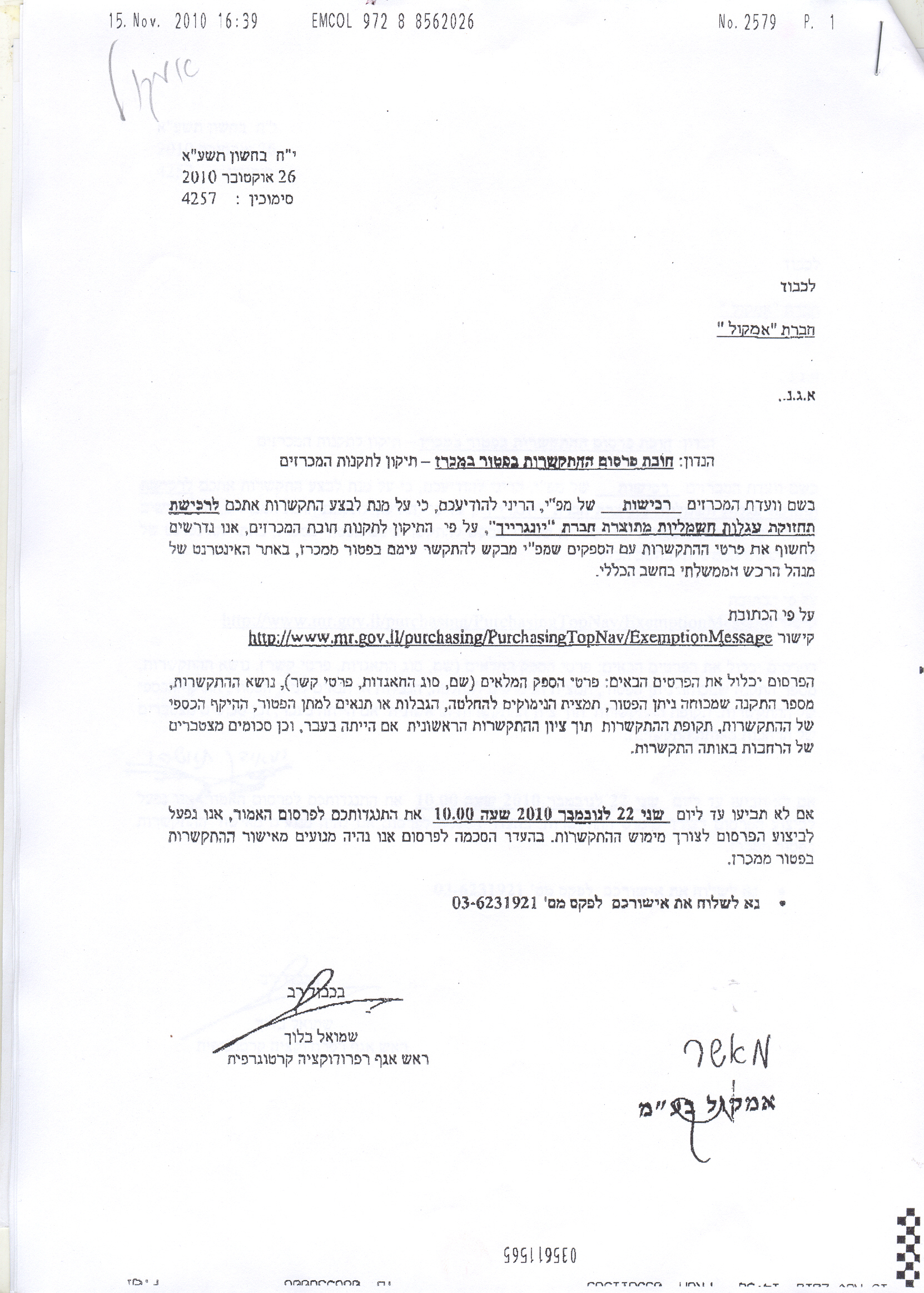 20/12/2010 ,00:00פרטי ההתקשרות