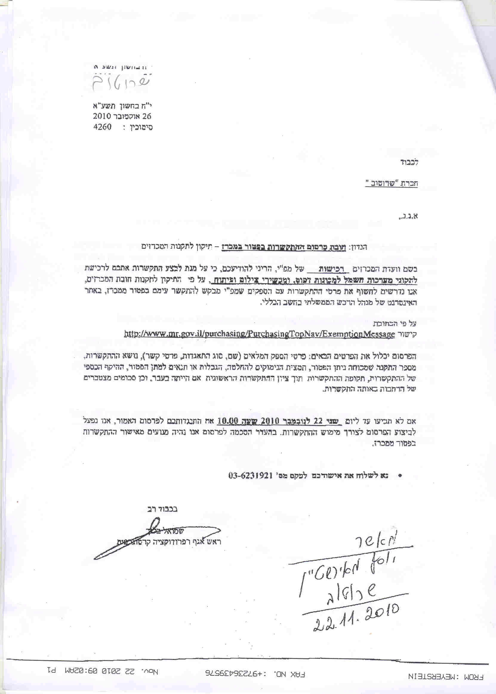 20/12/2010 ,00:00פרטי ההתקשרות
