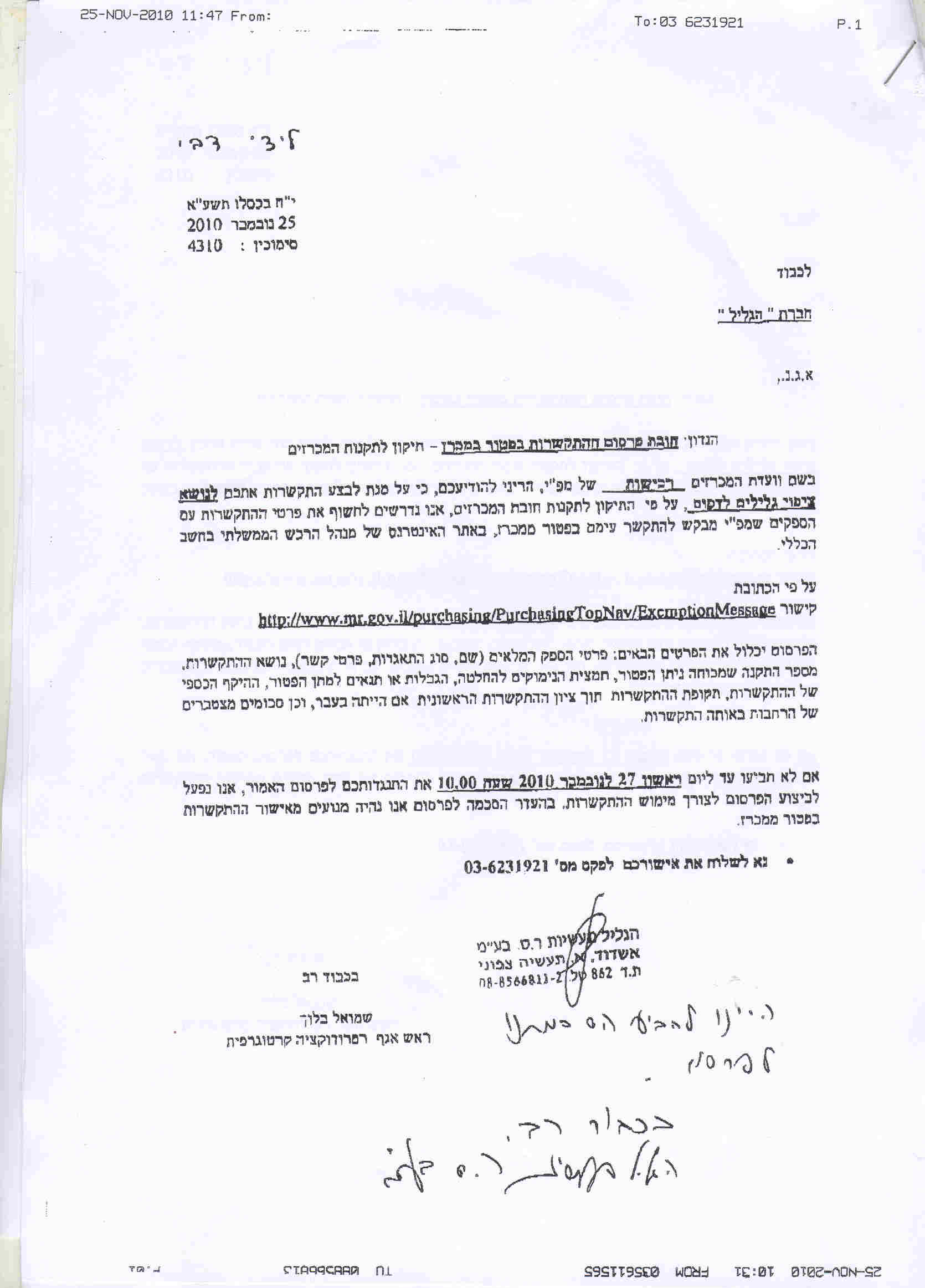 20/12/2010 ,00:00פרטי ההתקשרות