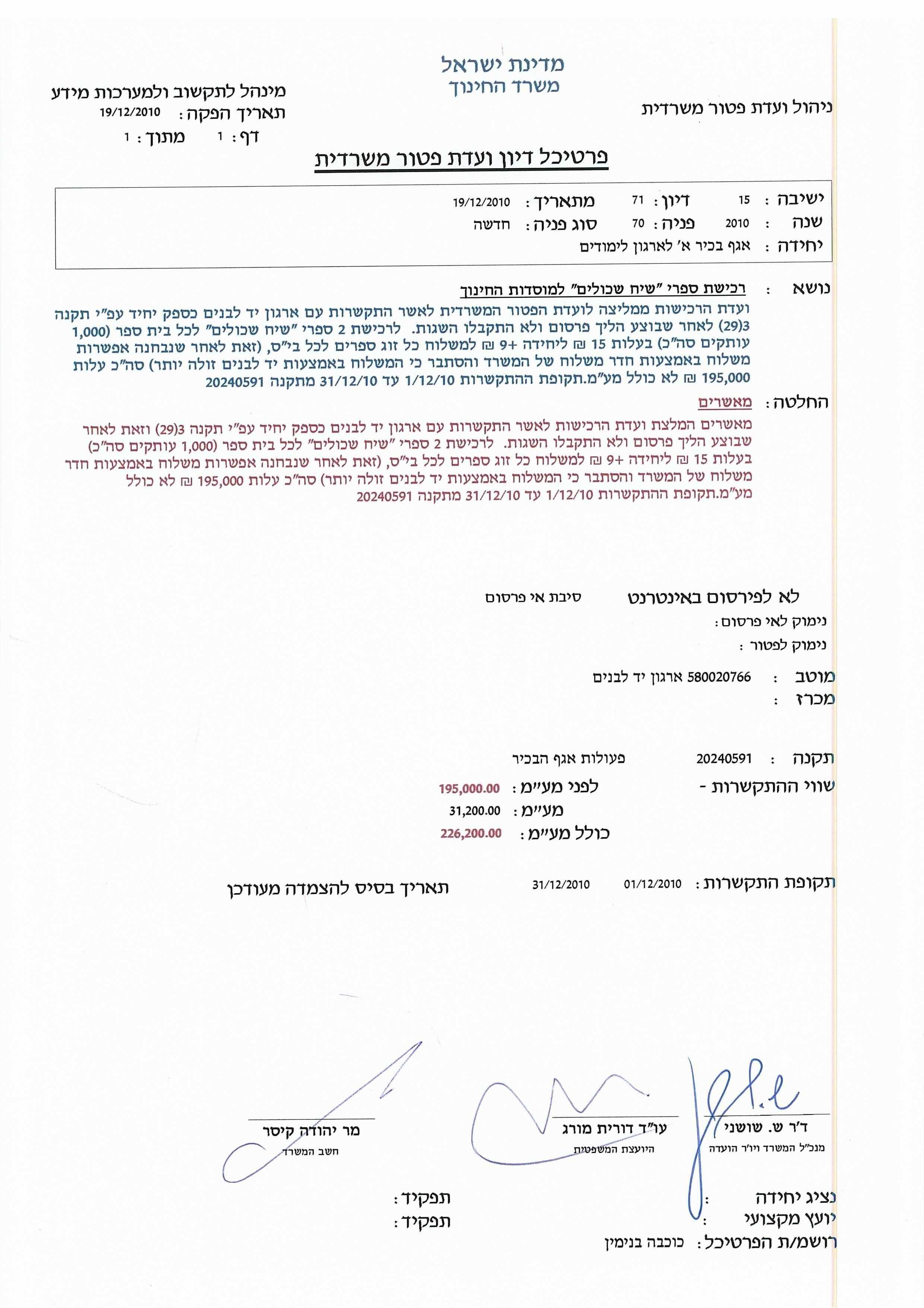 התקשרות עם ארגון יד לבנים לרכישת ספרי שיח שכולים לבתי ספר.
