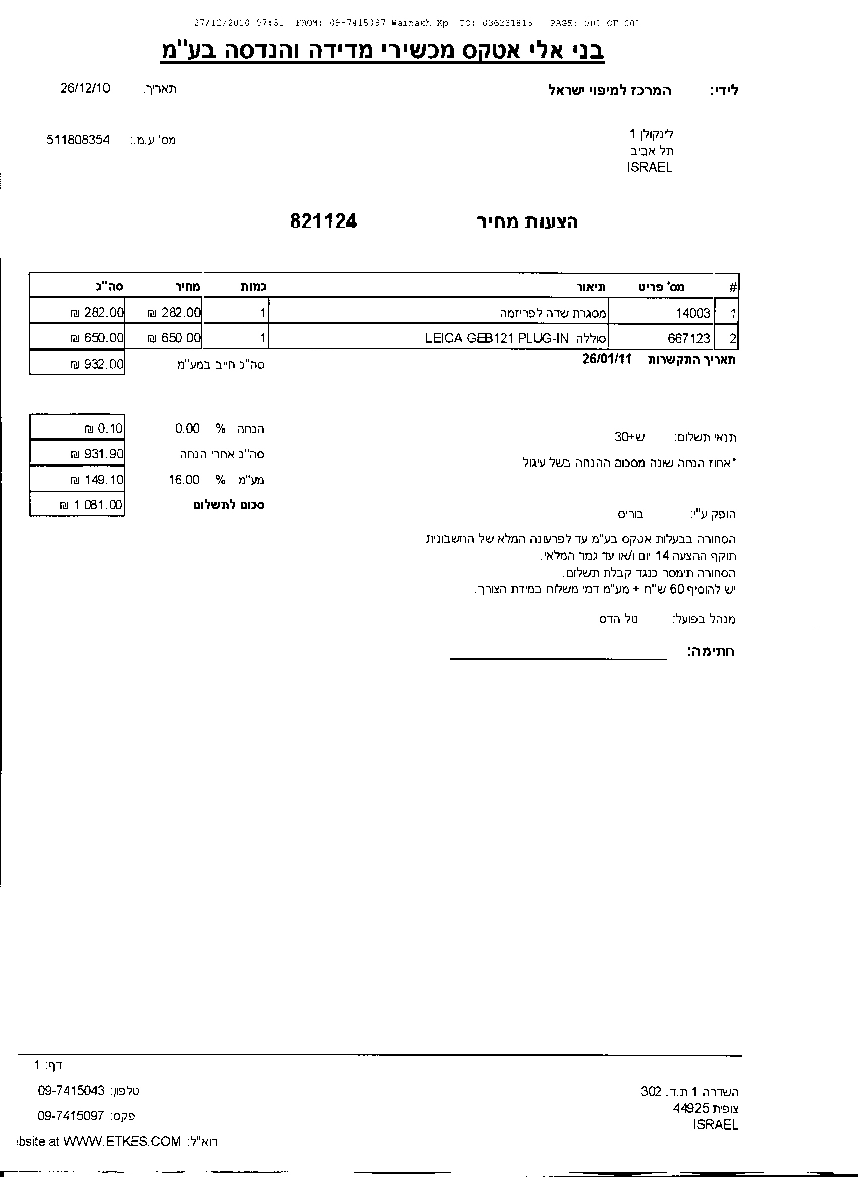 17/01/2011 ,00:00פרטי ההתקשרות