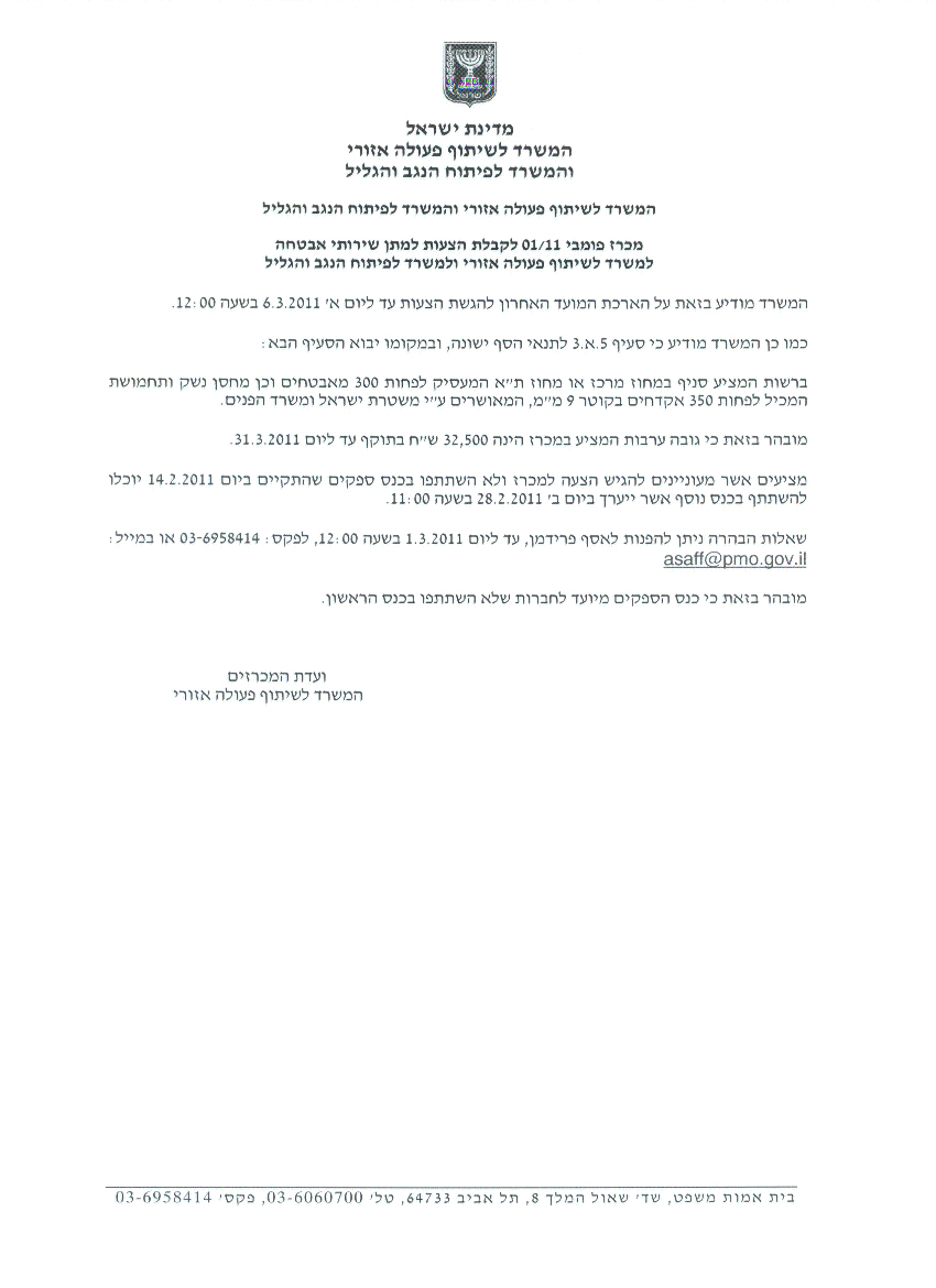 שירותי אבטחה למשרד לשיתוף פעולה אזורי ולמשרד לפיתוח הנגב והגליל