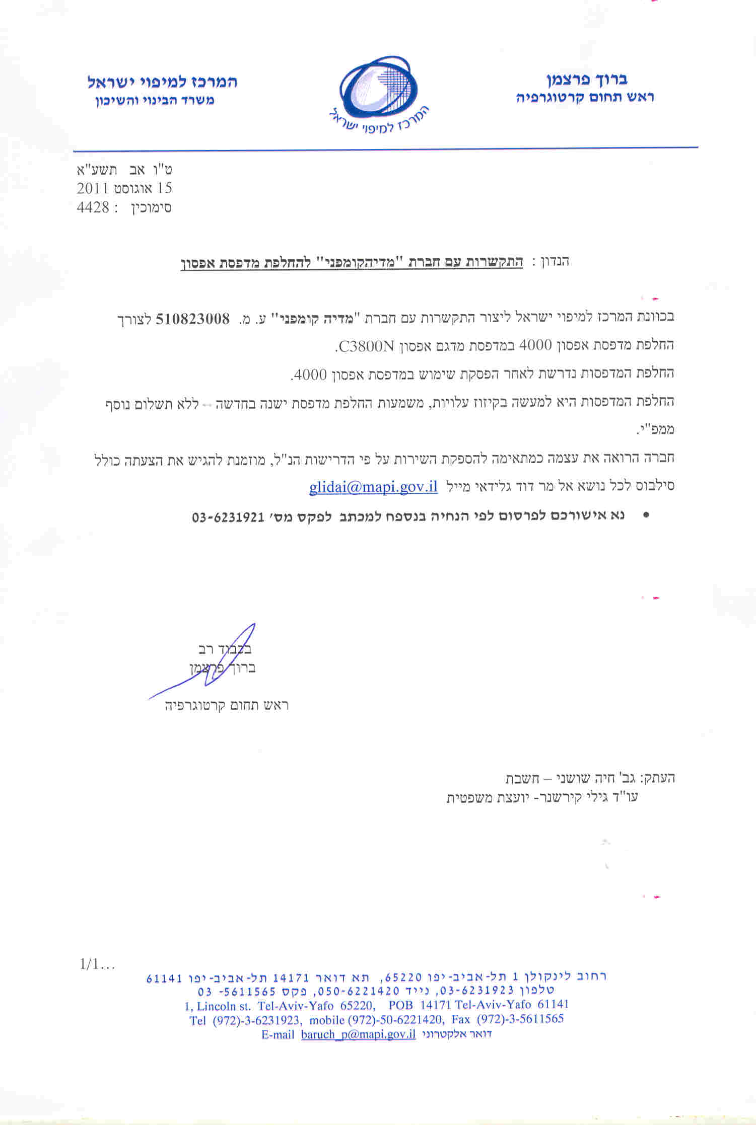 04/09/2011 ,00:00פרטי ההתקשרות