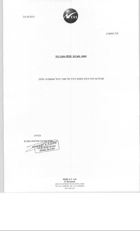 משרד הרווחה והשירותים החברתיים מעוניין להתקשר עם חברת נס איי.טי. בעמ. חברת נס הנה היצרן והספק הבלעדי של שר