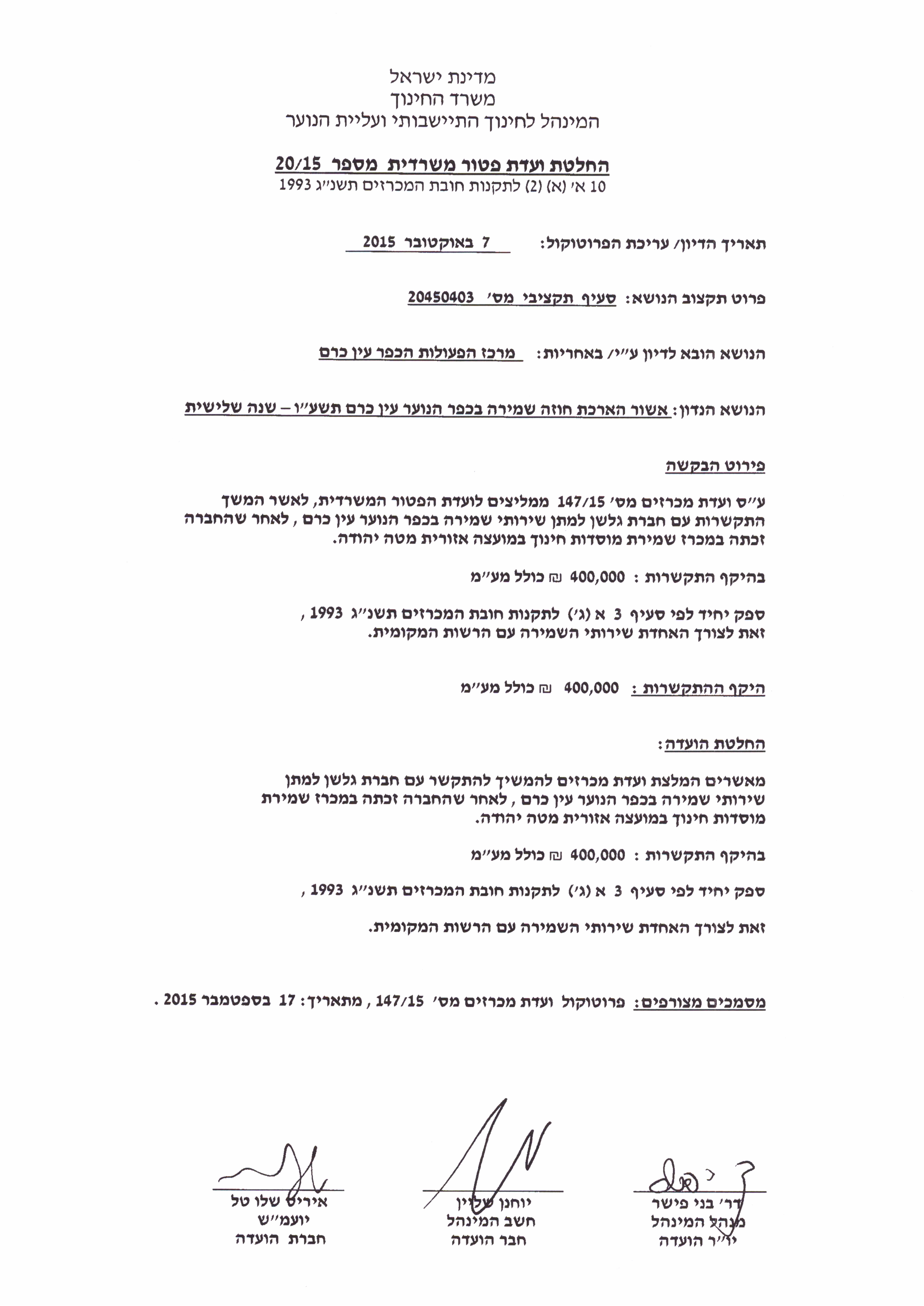 בקשה להארכת חוזה שמירה בכפר הנוער עין כרם
