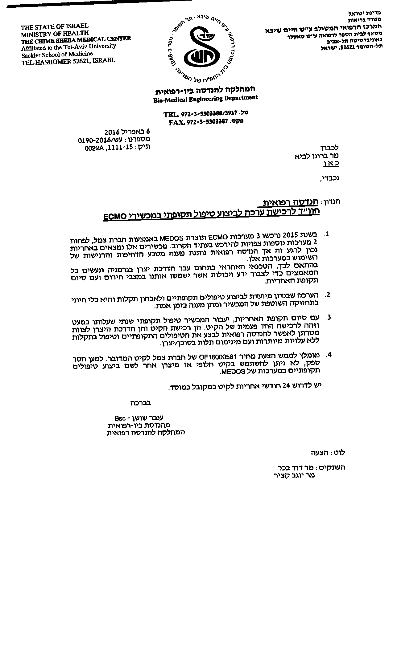 ערכה לביצוע טיפול תקופתי במכשירי ECMO