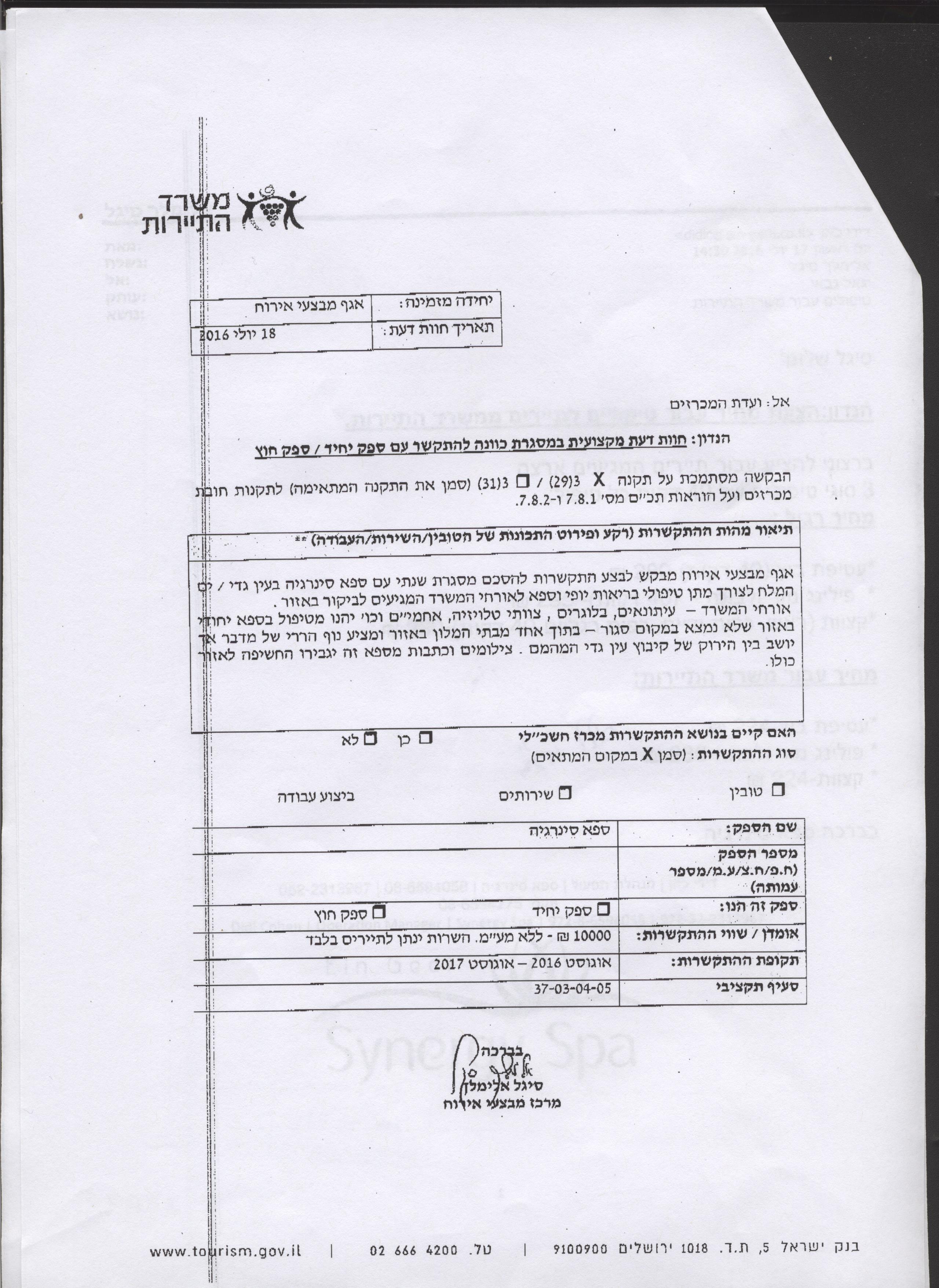 התקשרות עם ספא סינרגיה לשם מתן שירותי בריאות יופי וספא.