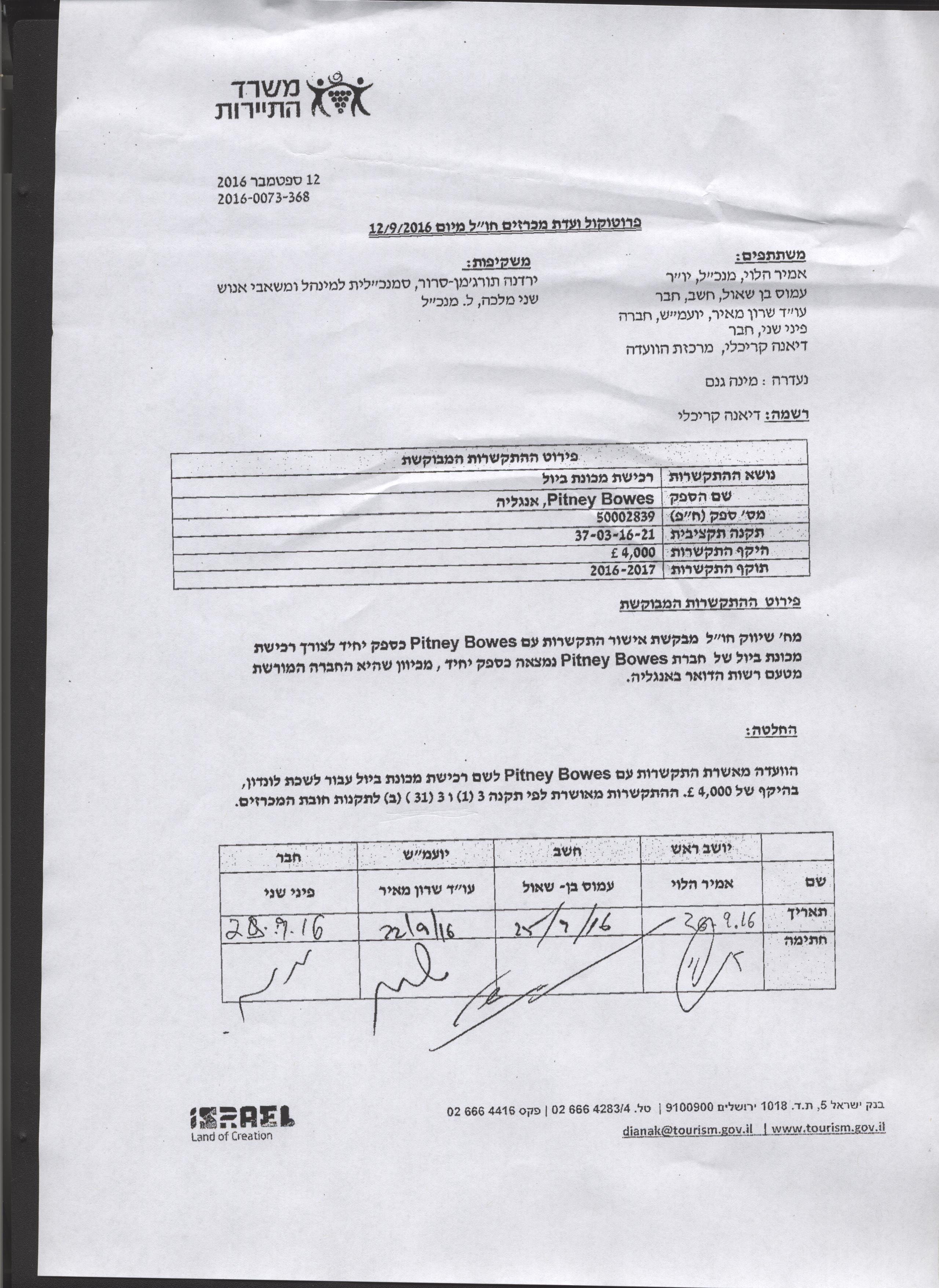 התקשרות עם Pitney Bowes אנגליה לשם רכישת מכונת ביול
