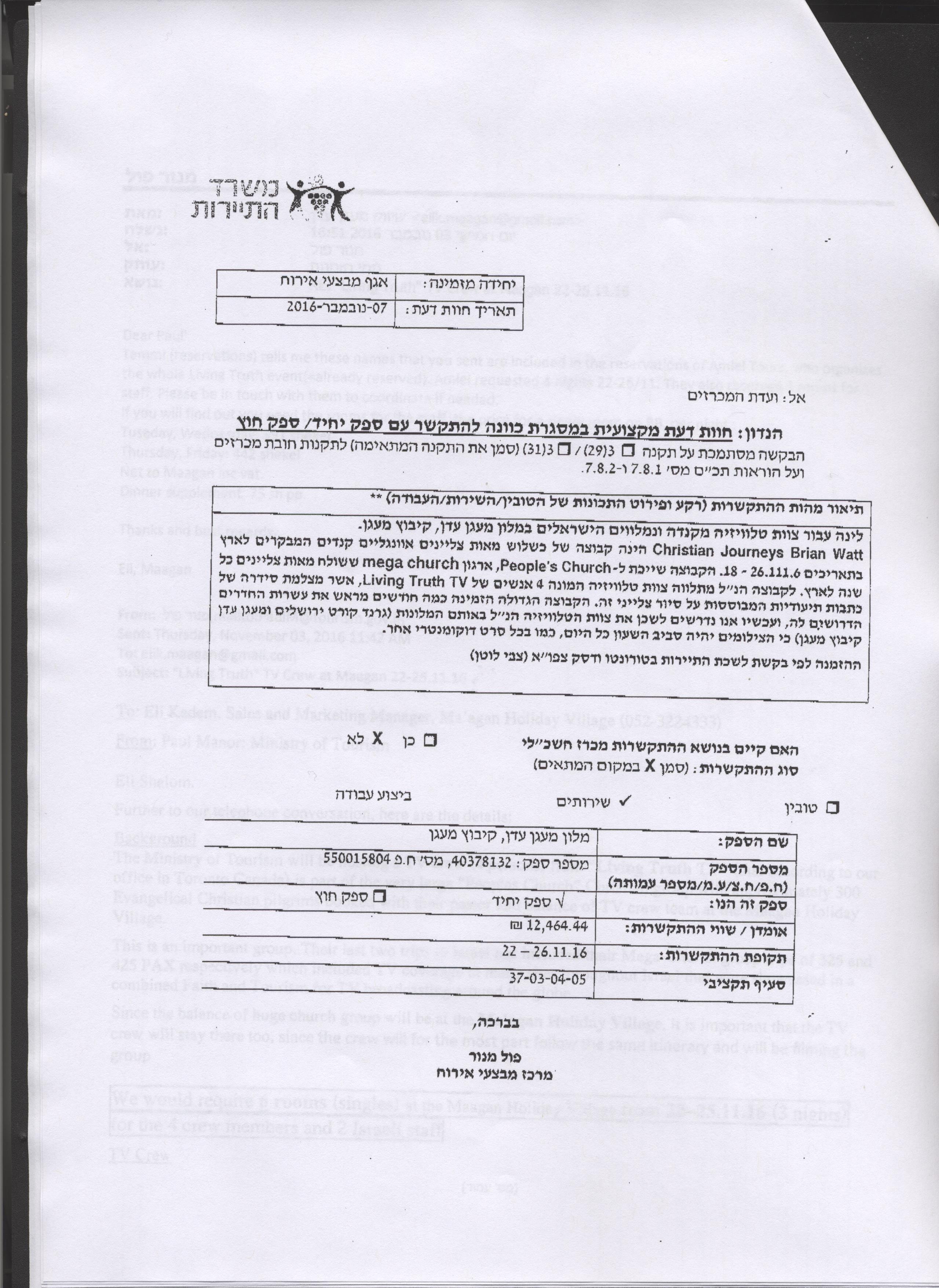 התקשרות עם מלון מעגן עדן, קיבוץ מעגן לשם אירוח