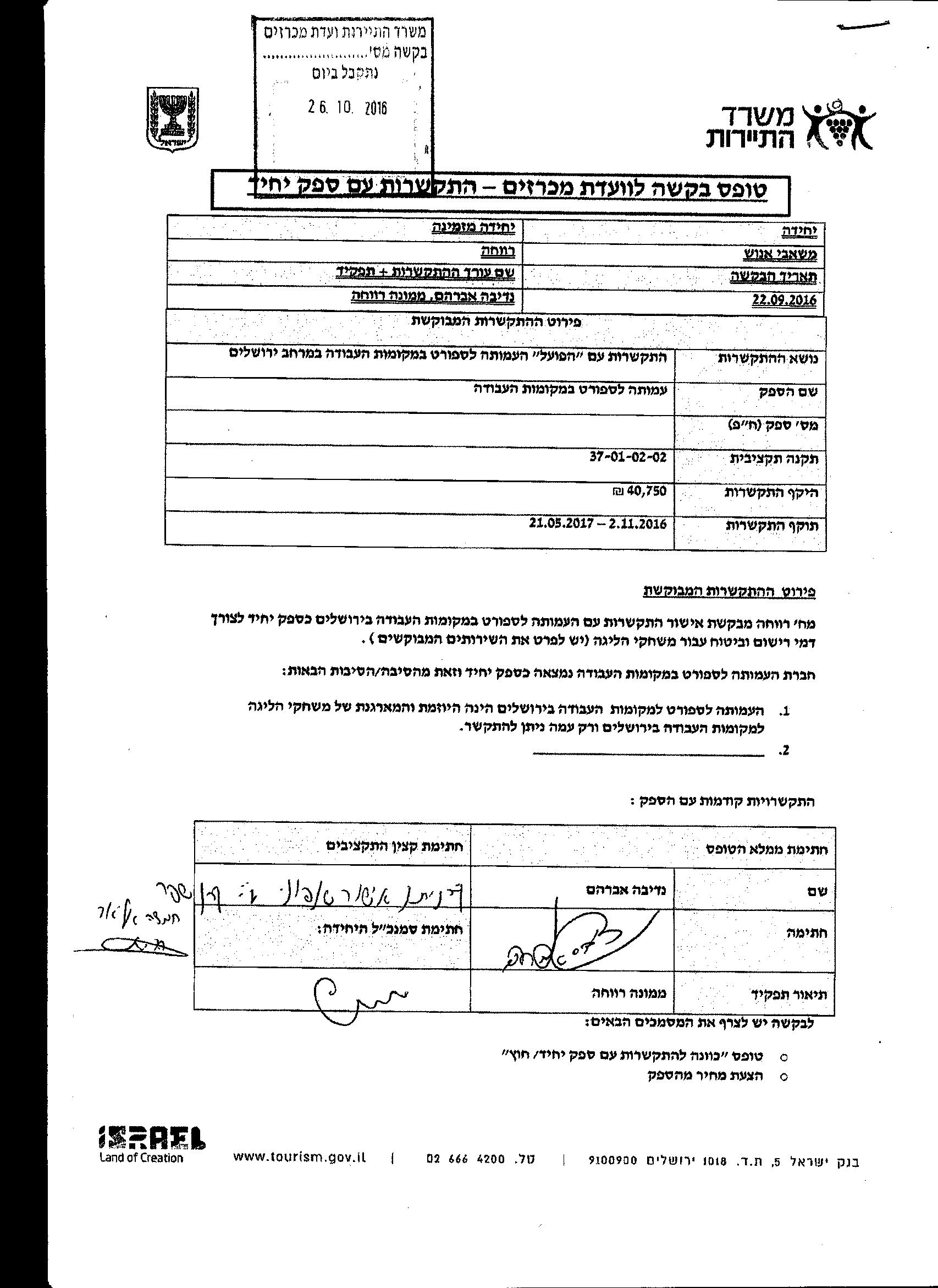 התקשרות עם הפועל- המחלקה לספורט במקומות עבודה (ער) מרחב ירושלים לשם רישום 6 קבוצות הספורט לעונת המשחקים לשנת