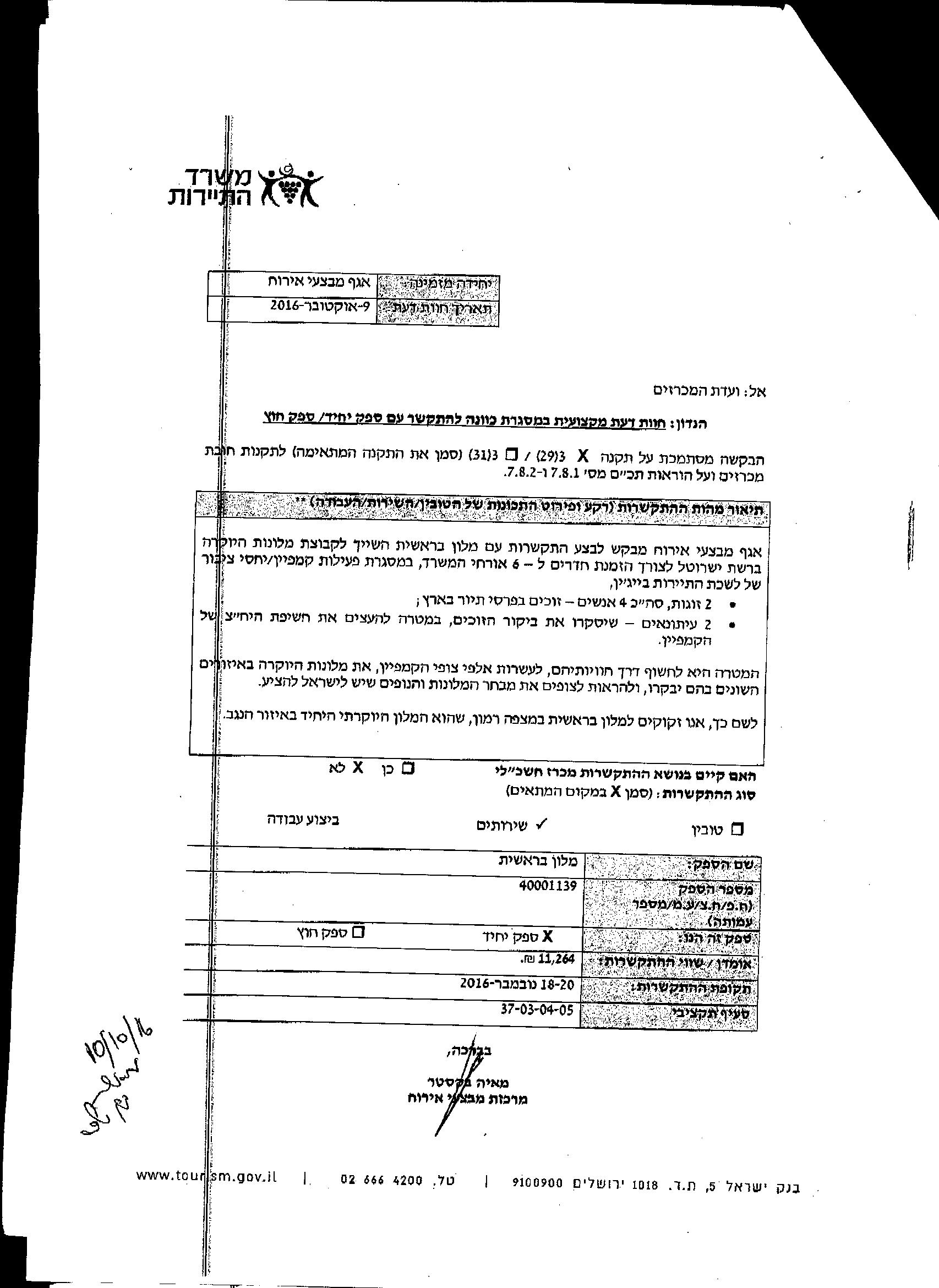 התקשרות עם מלון בראשית לשם מתן שירותי אירוח