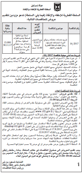 אספקת שירותים, מתקנים ואתר לקיום מבחנים למיון לוחמי אש עבור הרשות הארצית לכבאות והצלה