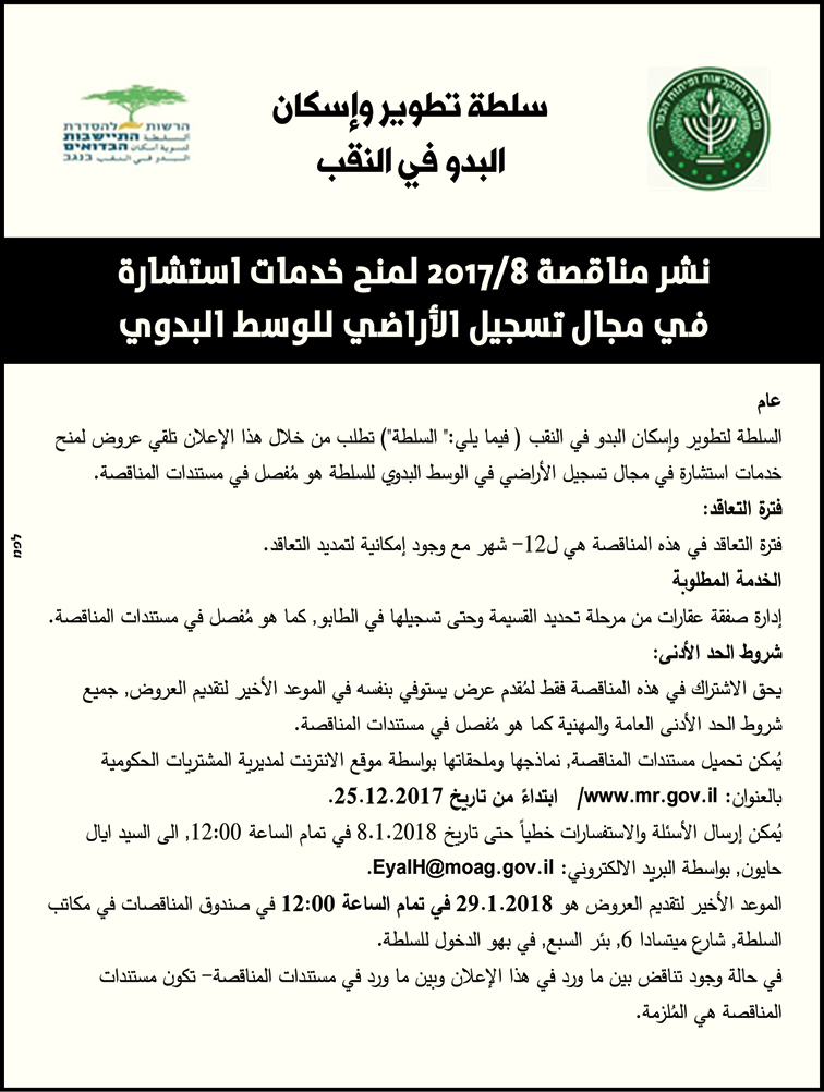 למתן שירותי ייעוץ בתחום רישום מקרקעין במגזר הבדואי