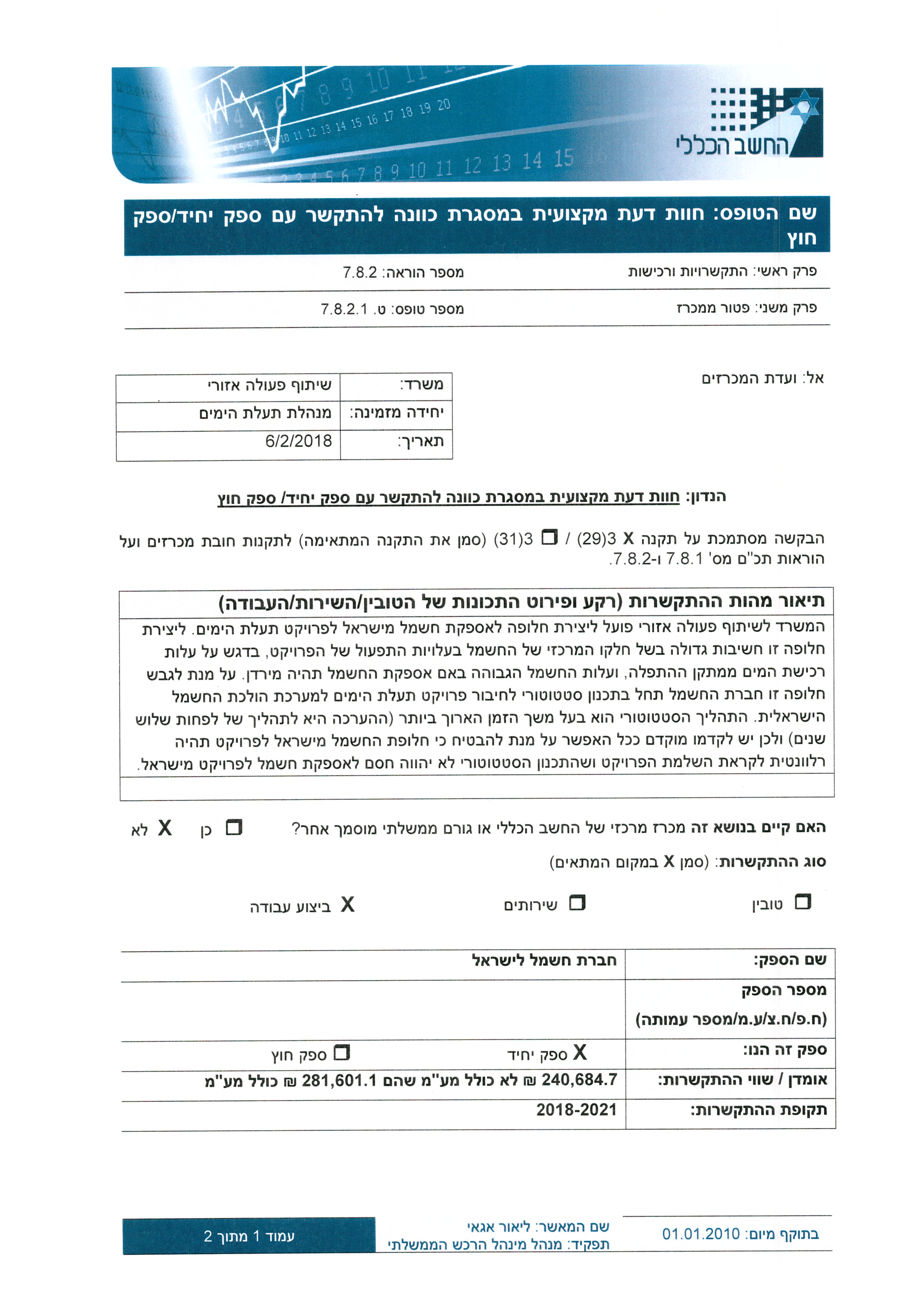 תכנון סטטוטורי לחיבור פרויקט תעלת הימים למערכת הולכת החשמל הישראלית