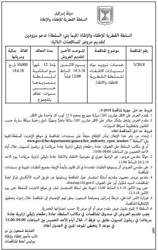 מתן שירותים לאספקת מים לרכבי כיבוי עבור הרשות הארצית לכבאות והצלה