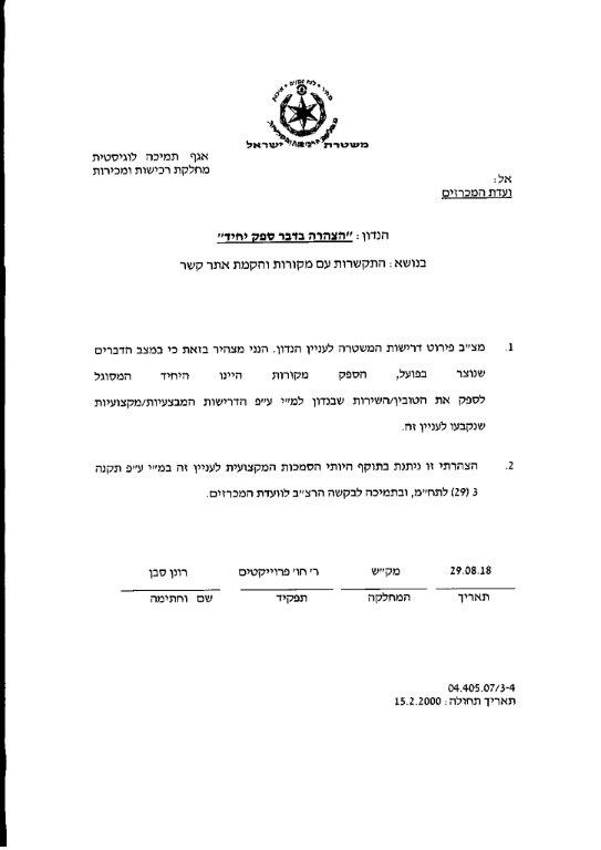 משטרת ישראל מעוניינת להתקשר עם הספק הנל לטובת התקנת ציוד קשר באחד ו/או יותר מאתריו