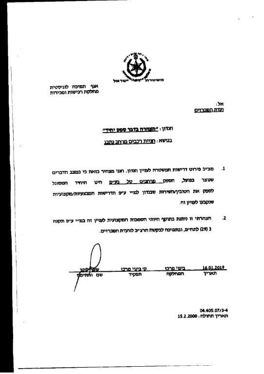 משטרת ישראל מעוניינת להתקשר עם הספק הנל לטובת מתן שירותי חניית רכבים במרחב נתבג
