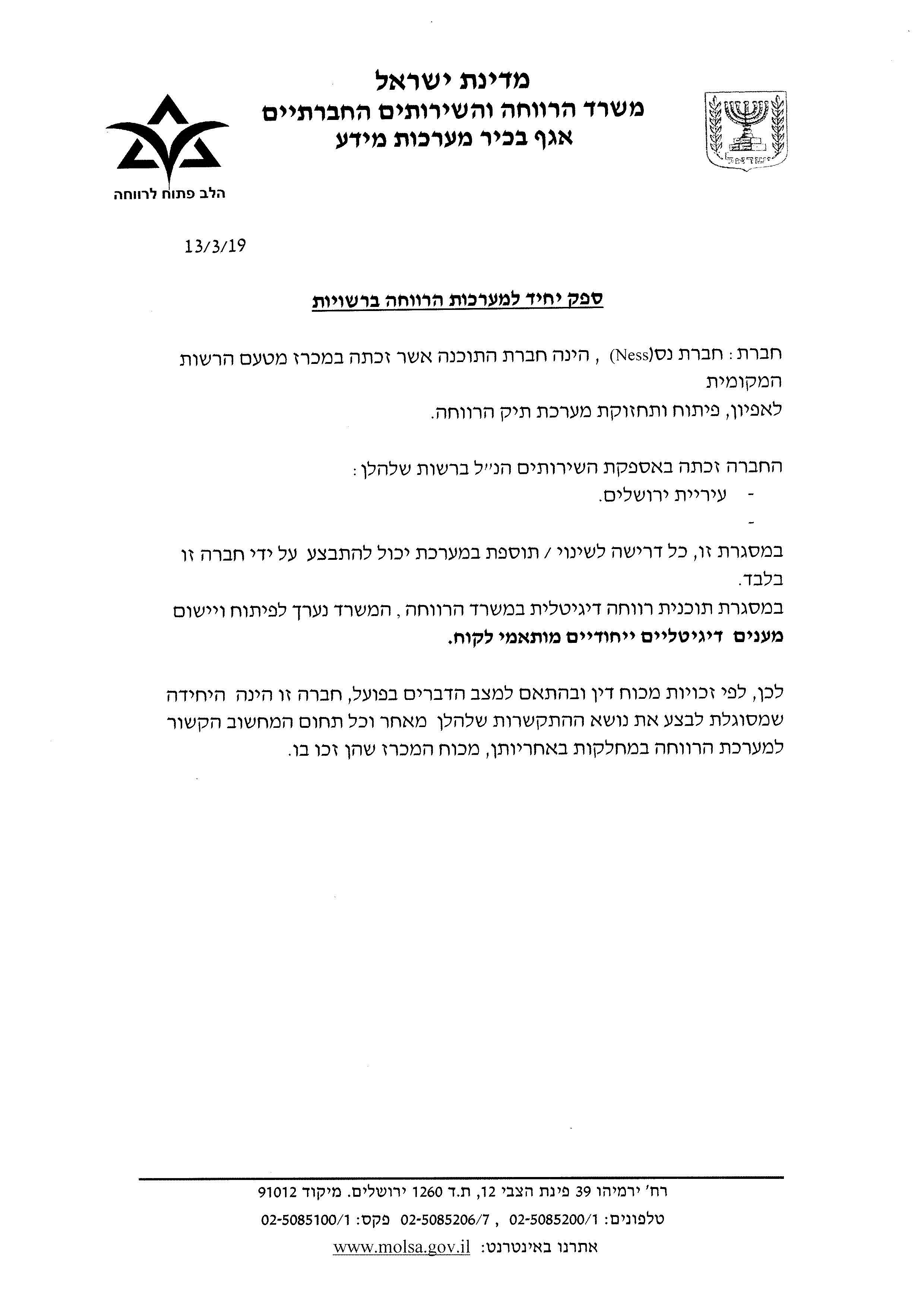 המשךהתקשרות עם חברת נס אי.טי (ח.פ. 520040122) לצורך הטמעה של מענים דיגיטליים ייחודיים מותאמי לקוח מתוה במס