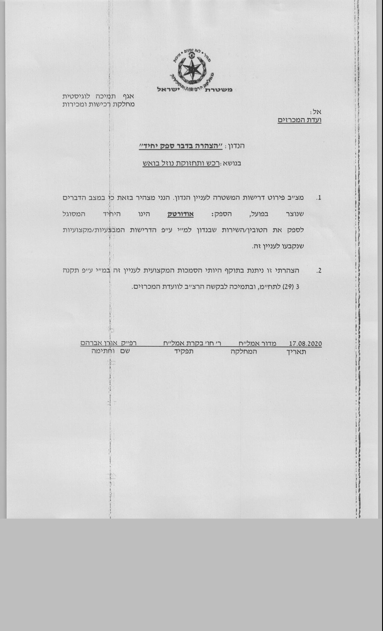 בכוונת משטרת ישראל לרכוש מהספק הנל נוזל בואש. הנוזל מיועד לשימוש כאמצעי במתארי הפסד. הנוזל מיוצר ומשווק ע