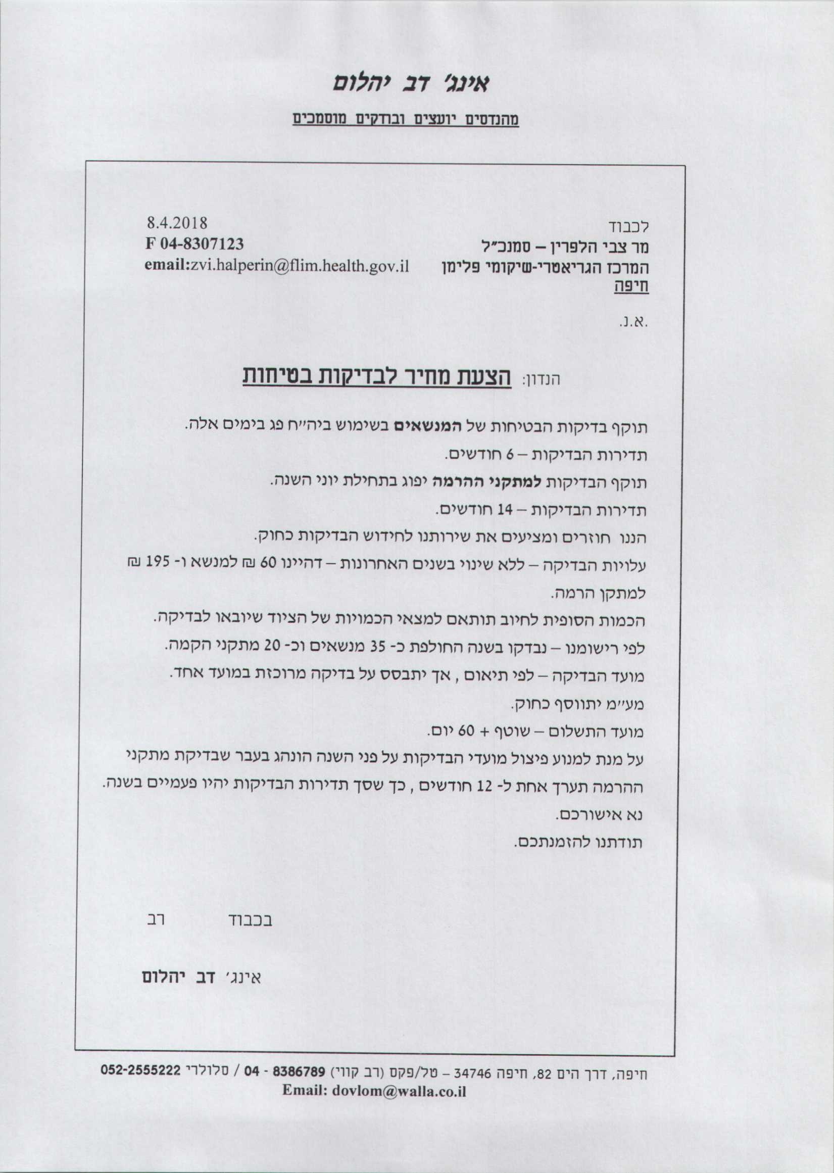 חברת דב יהלום הינה חברה המתמחת בתחום נושא בודק מוסמך למנופים ואביזרי הרמה . החברה מעניקה שירותים אלו לביהח